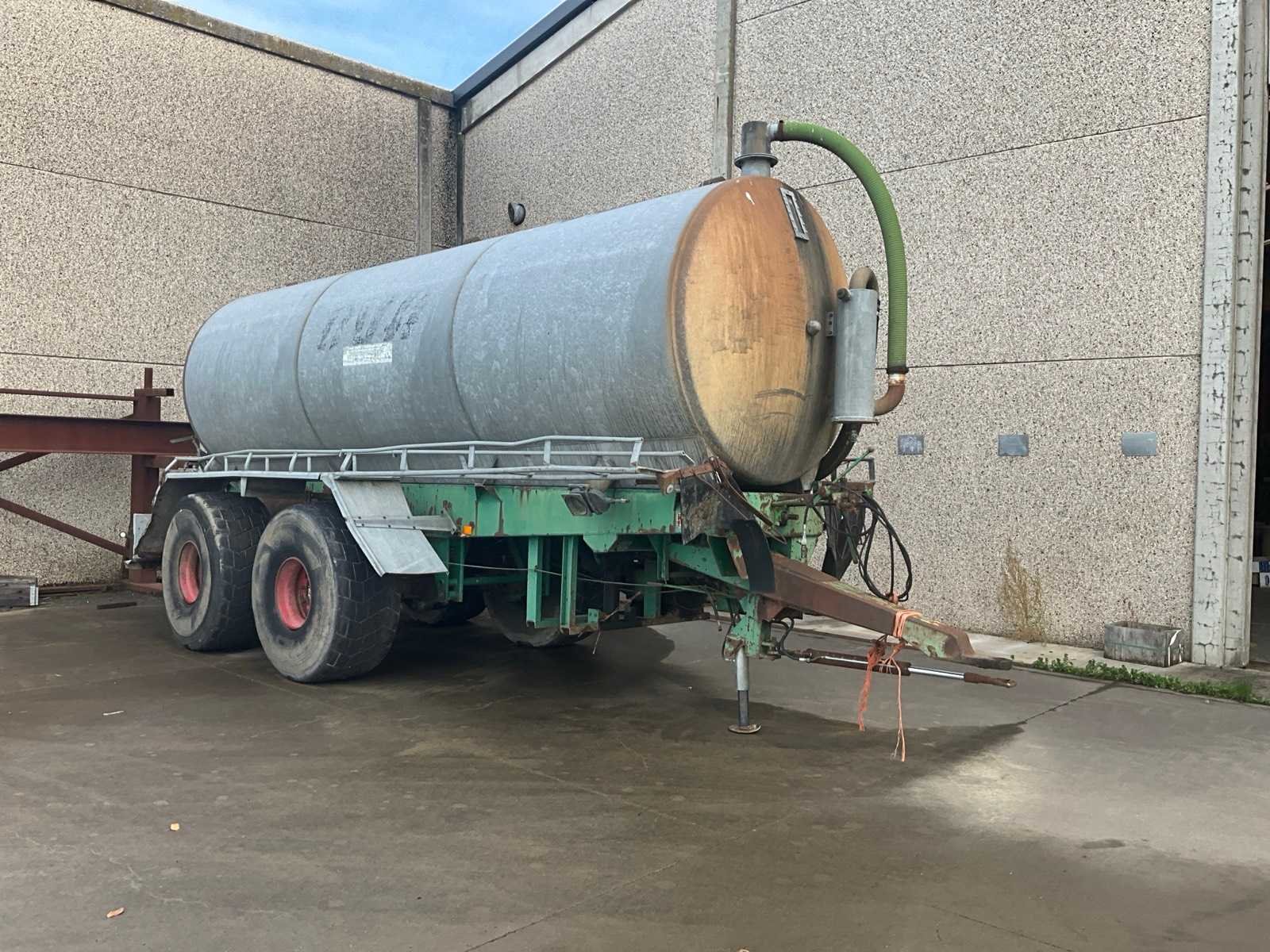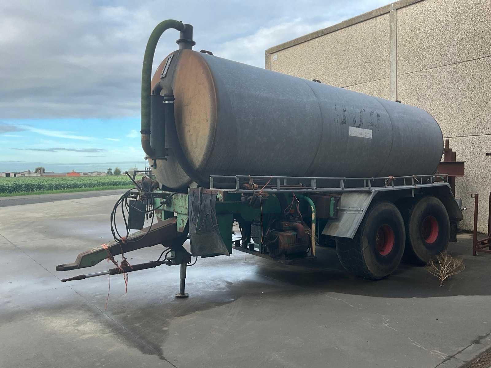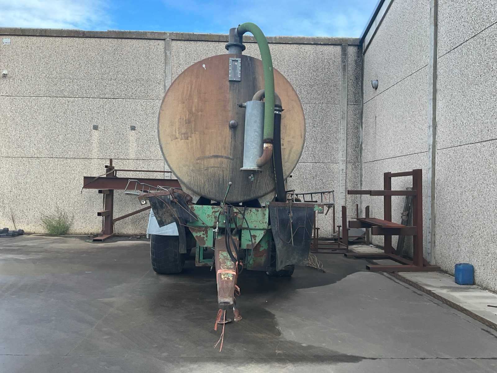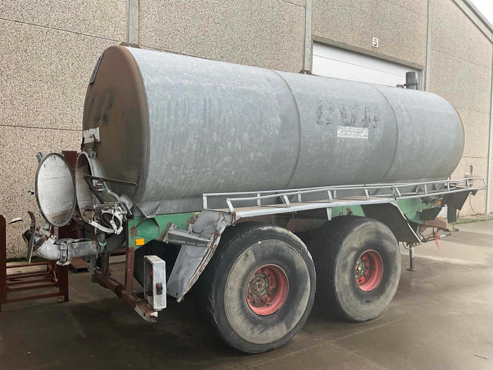 Merk: O.V.A. (Landbouwmachines, Ardooie - België) Type: LB55622188 Bouwjaar: 1990 Chassisnummer: G74386 P.V.A. (Toegelaten aslast): 3500 kg Totaal gewicht op grond (GVW): 22.000 kg Categorie: Overige agrarische machines Machine: Mesttank / giertank op aanhangwagen Aantal assen: 2 Banden: Dubbele luchtbanden achteraan Materiaal tank: Metaal (staal) Slang: Aanzuig- en persslang aanwezig bovenop Voorzien van: Vulopening met groot luik en sluitmechanisme Uitloop: Grote aftapkraan/aflaat onderaan de tank Staat: Gebruikt, zichtbaar roestvorming en gebruikssporen Locatie typeplaatje: Vooraan op chassis Merk: O.V.A Type: LB55622188 Bouwjaar: 1990