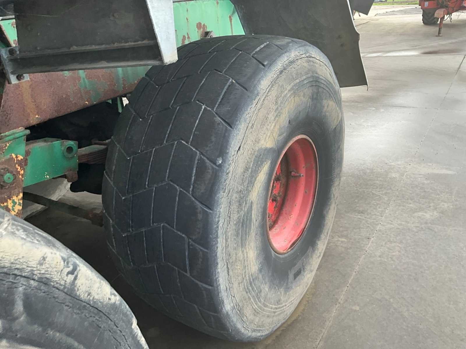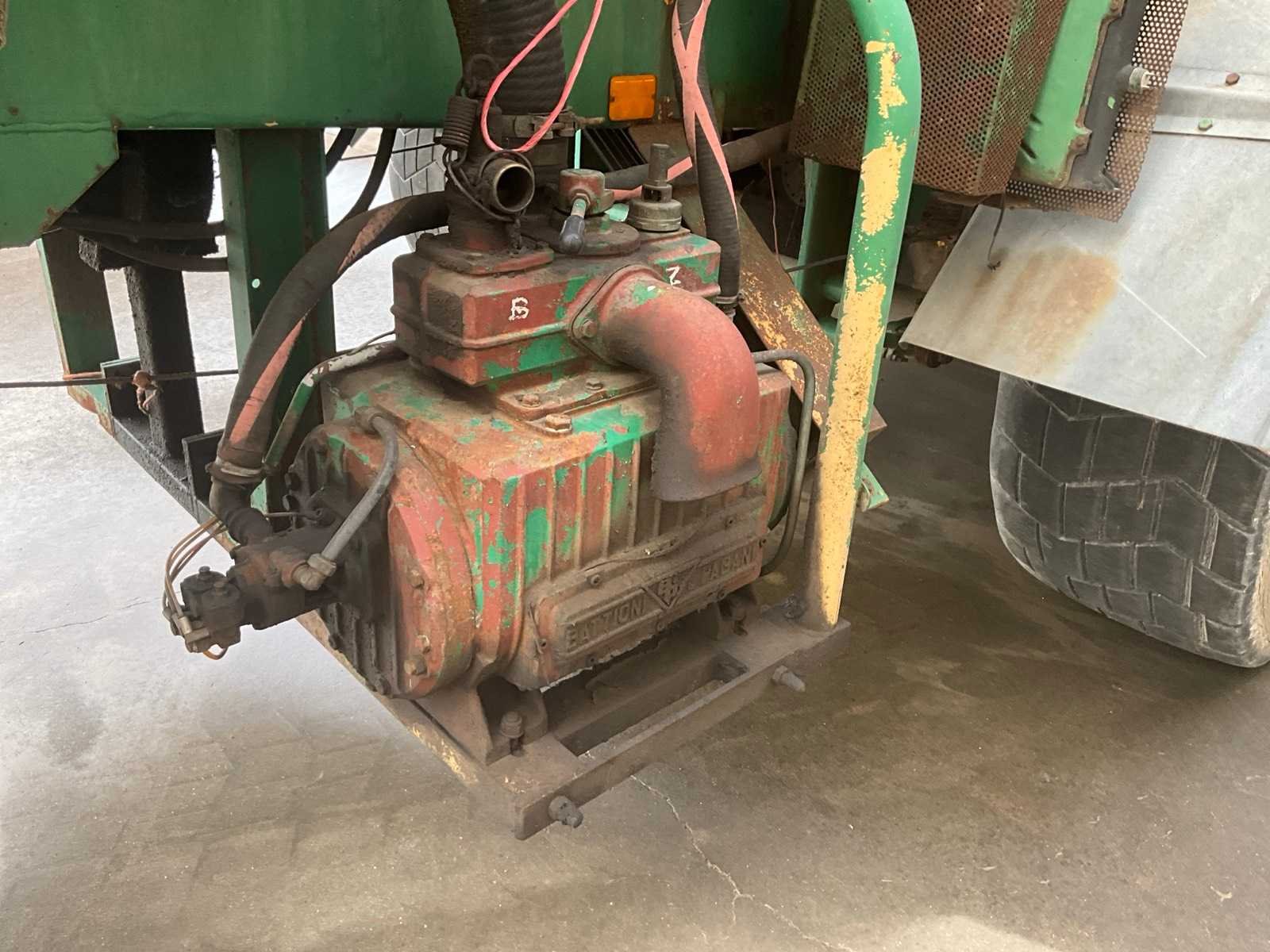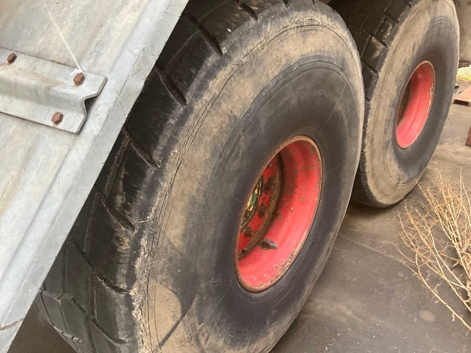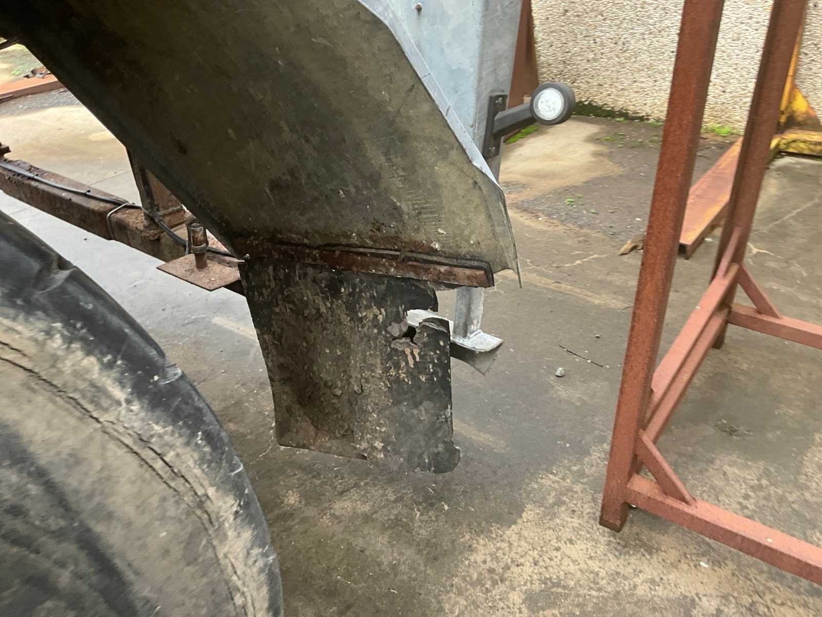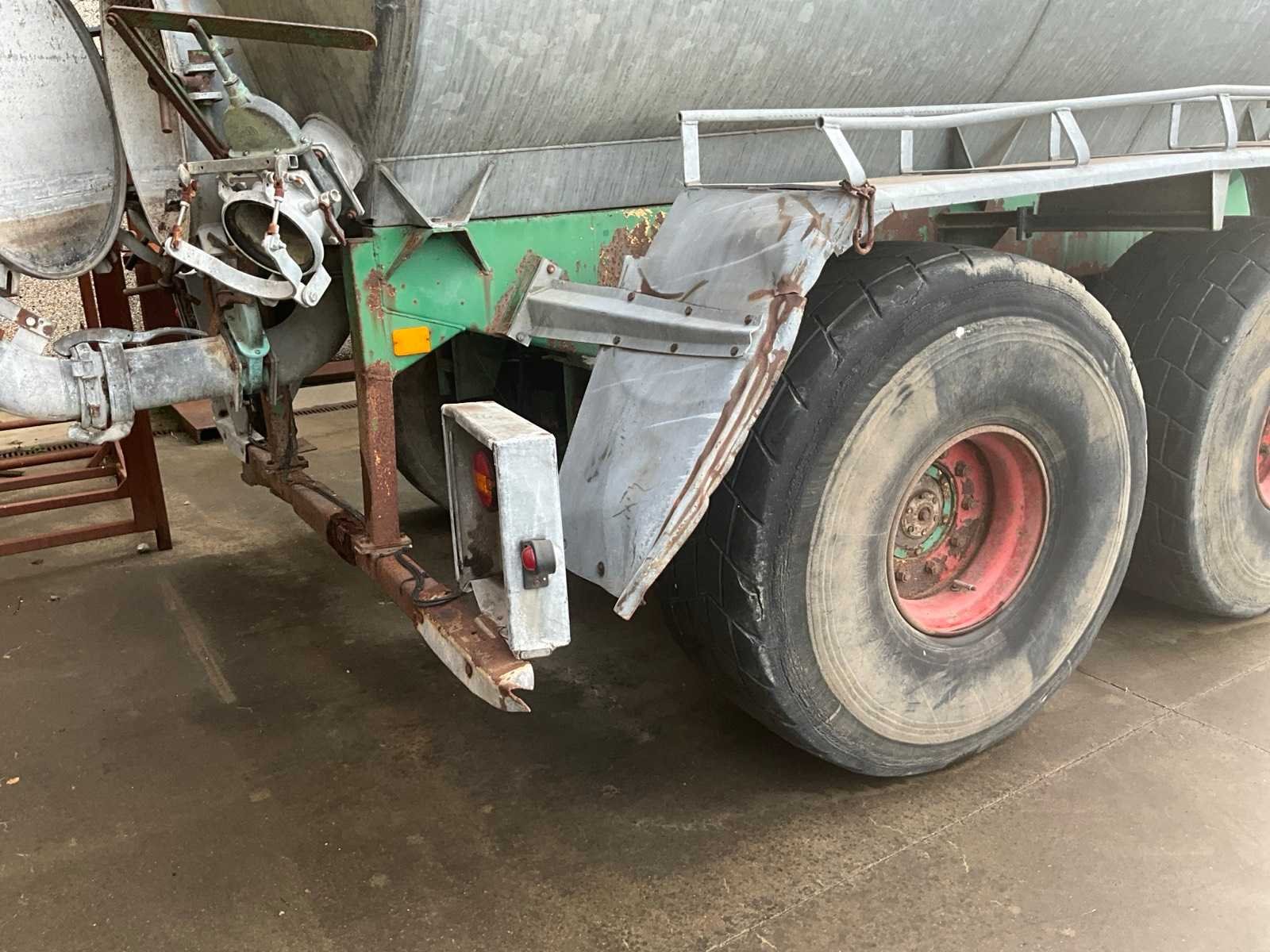 Merk: O.V.A. (Landbouwmachines, Ardooie - België) Type: LB55622188 Bouwjaar: 1990 Chassisnummer: G74386 P.V.A. (Toegelaten aslast): 3500 kg Totaal gewicht op grond (GVW): 22.000 kg Categorie: Overige agrarische machines Machine: Mesttank / giertank op aanhangwagen Aantal assen: 2 Banden: Dubbele luchtbanden achteraan Materiaal tank: Metaal (staal) Slang: Aanzuig- en persslang aanwezig bovenop Voorzien van: Vulopening met groot luik en sluitmechanisme Uitloop: Grote aftapkraan/aflaat onderaan de tank Staat: Gebruikt, zichtbaar roestvorming en gebruikssporen Locatie typeplaatje: Vooraan op chassis Merk: O.V.A Type: LB55622188 Bouwjaar: 1990