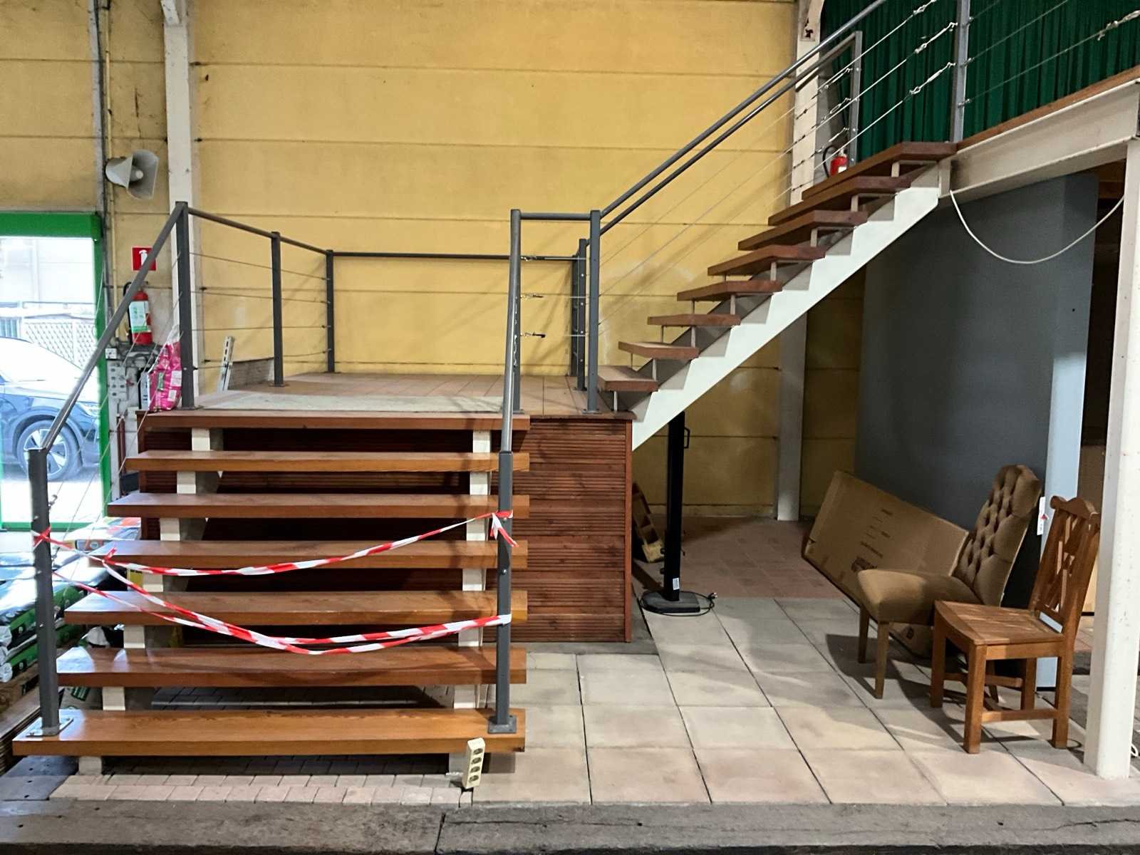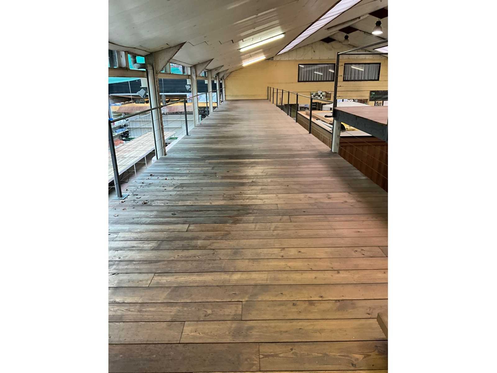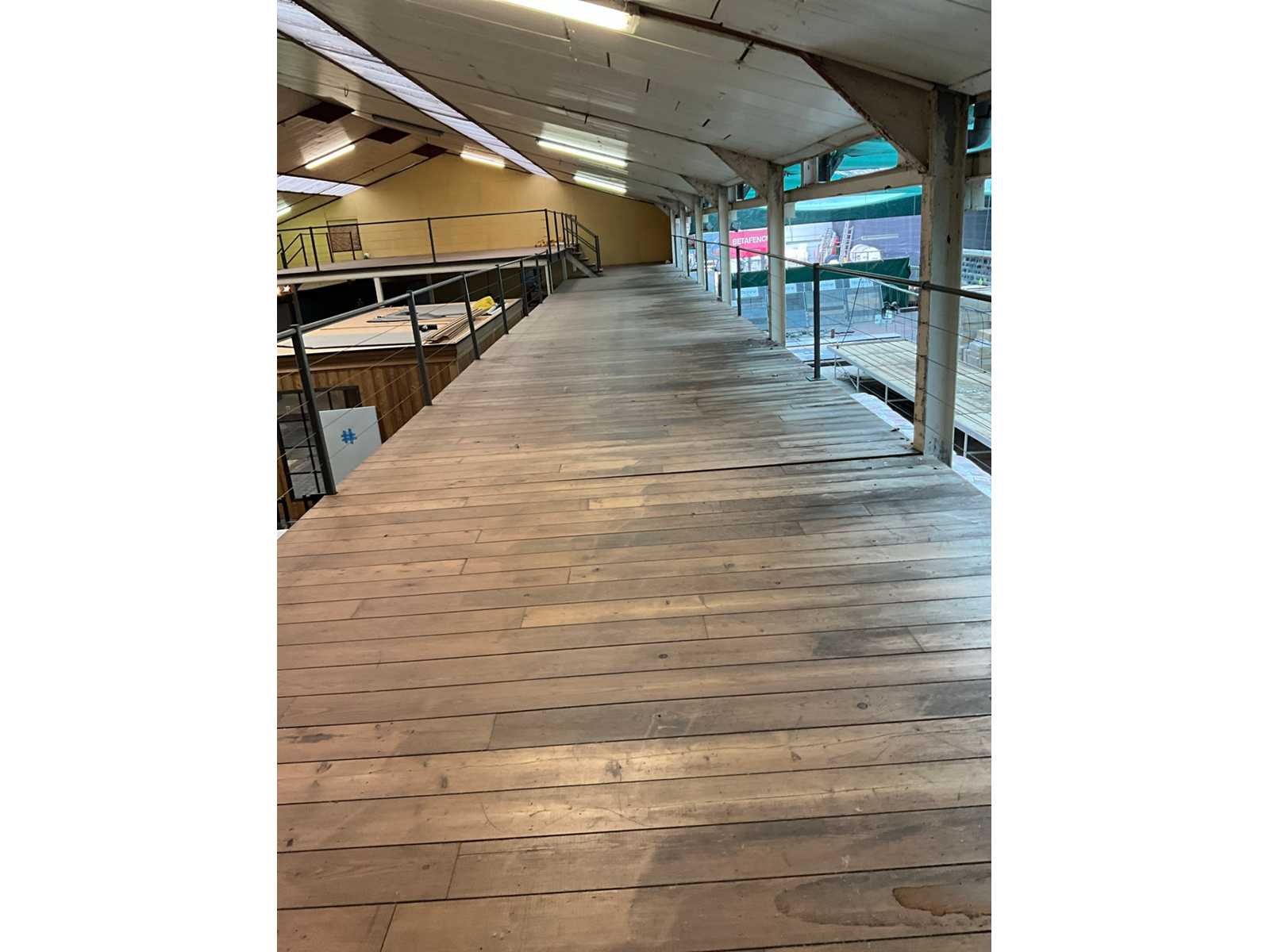Bestaande uit winkelverdiep met houtenvloer en draagbalken + stalen draagconstructie - OPGELET : koper dient zelf te demonteren en te laten - demonterencin samenspraak met de verkoper - totale oppervlakte 330 M2 - alle leuningen zijn inbegrepen