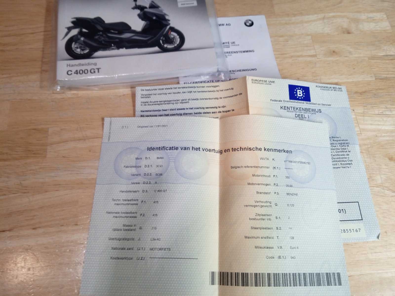 Inschrijvingsbewijs deel 1 en 2 aanwezig, gelijkvormigheidsattest aanwezig kilometerstand niet afleesbaar Merk: bmw Model: c 400 gt Chassisnummer: WB40CO60XLS880423 Cilinderinhoud: 400cc Datum eerste toelating: 06/07/2020 Vermogen (kW): 25kW Boorddocumenten aanwezig?: true Aantal sleutels: 1 Startinformatie: Start niet, accu te zwak Bouwjaar: 2020