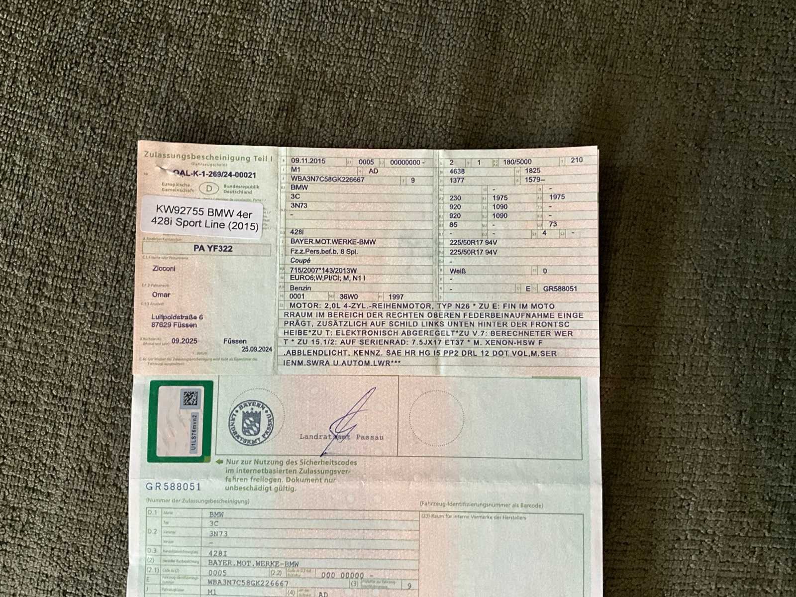 Merk: BMW Model: 428i sport line Bouwjaar: 2015 Afgelezen kilometerstand: 144511km Cilinderinhoud: 1997cc Vermogen (kW): 230kW Brandstof: benzine Chassisnummer: WBAN37C58GK226667 Datum eerste toelating: 09/11/2015 Aantal zitplaatsen: 5 Emissieklasse: Euro 6 Aantal deuren: 5 Nationaliteit documenten: Duits Start en rijdt: Ja startinformatie : Start & rijdt Vavato voert geen technische keuring uit.: true Airconditioning: true Navigatie: true Xenon verlichting: true LED-koplampen: true Leder bekleed: true