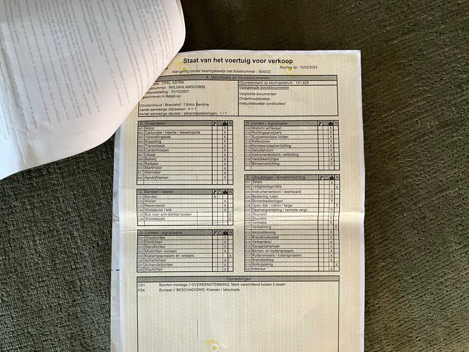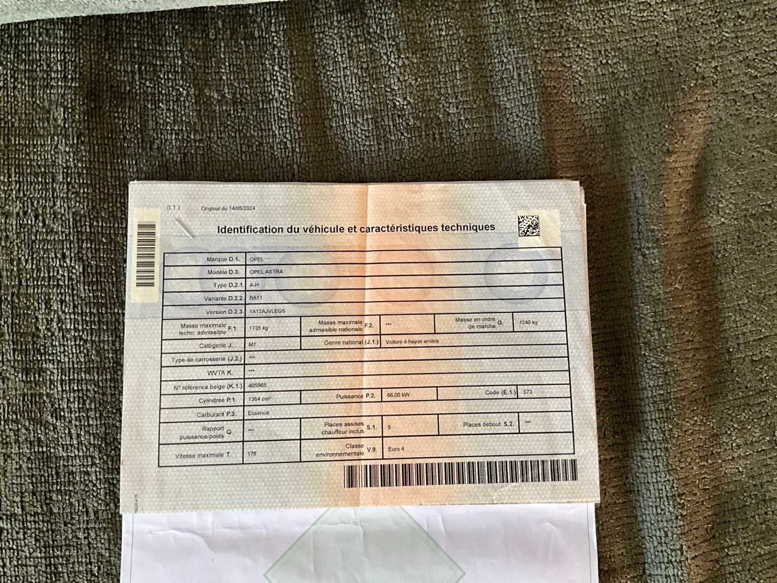 Merk: Opel Model: Astra Bouwjaar: 2007 Afgelezen kilometerstand: 157086km Cilinderinhoud: 1364cc Vermogen (kW): 66kW Brandstof: Benzine Chassisnummer: W0L0AHL4885029859 Datum eerste toelating: 31/10/2007 Aantal zitplaatsen: 5 Transmissie: Automaat Emissieklasse: Euro v4 Aantal deuren: 5 Nationaliteit documenten: Belgisch Start en rijdt: Ja Keuringsrapport geldig tot: 10/05/2026 startinformatie : Start & Rijdt Vavato voert geen technische keuring uit.: true Airconditioning: true Inschrijvingsbewijs - deel 1 : Aanwezig Inschrijvingsbewijs - deel 2: Aanwezig
