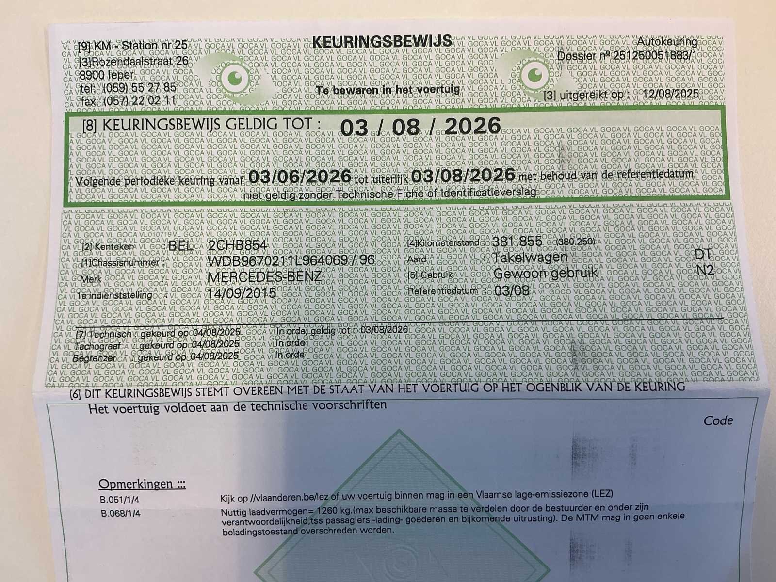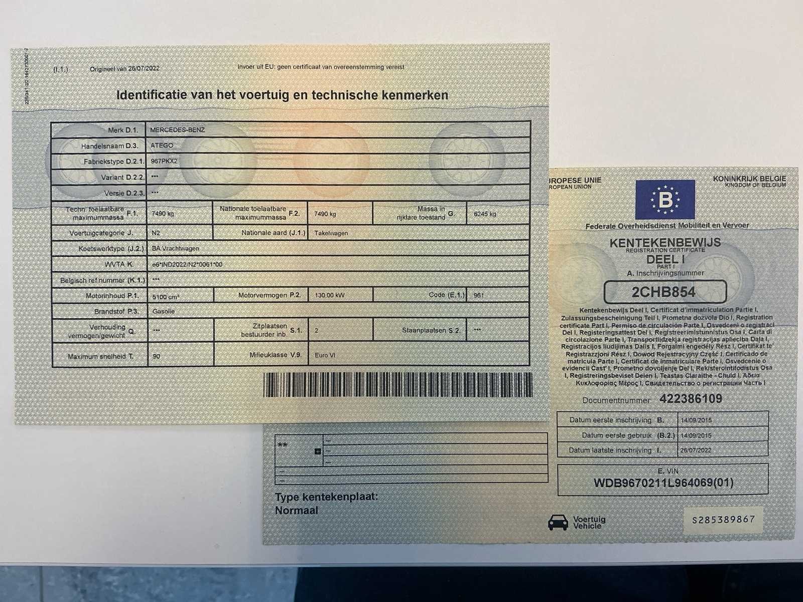 Heeft in 2025 volledig nazicht gekregen en is operationeel om direct te gebruiken. Merk: Mercedes-Benz Type: Atego Bouwjaar: 2015 Chassisnummer VIN: WDB9670211L964069 Cilinderinhoud: 5100cc Kilometerstand bij opname: 392112km Datum eerste toelating: 14/09/2015 Type transmissie: Automatisch Aantal assen: 2 Fuel Type: Diesel Laadvermogen: 1345kg Aantal sleutels: 1 Emissieklasse: Euro 6 Eigen gewicht: 6245kg Totale afmeting L: 8300mm Totale afmeting Breedte: 2480mm Totale afmeting Hoogte: 2760mm Startinformatie: Start, rijdt, remt Nationaliteit documenten: BE Kentekenpapieren compleet?: true Aantal zitplaatsen: 3 Automaat: true Diesel: true