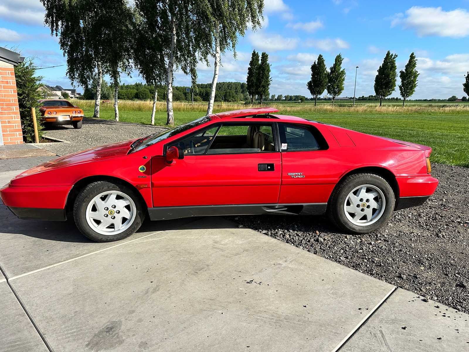 Volledig originele auto. Start en rijdt prima. Optisch en technisch goed. Originele verf. Belgische auto. Merk: Lotus Type: Esprit 2.2 Turbo Bouwjaar: 1989 Chassisnummer: SCC082910JHH11002 Afgelezen kilometerstand: 100291 Brandstof: benzine Datum eerste toelating: 14/07/1989 Boorddocumenten aanwezig?: true Transmissie: manual Vermogen (pk): 254 Aantal deuren: 2 Aantal zitplaatsen: 2 Aantal sleutels: 1 Kleur: Rood Cilinderinhoud: 2200 Aantal cilinders: 4 Inschrijvingsbewijs - deel 1 : aanwezig Inschrijvingsbewijs - deel 2: aanwezig