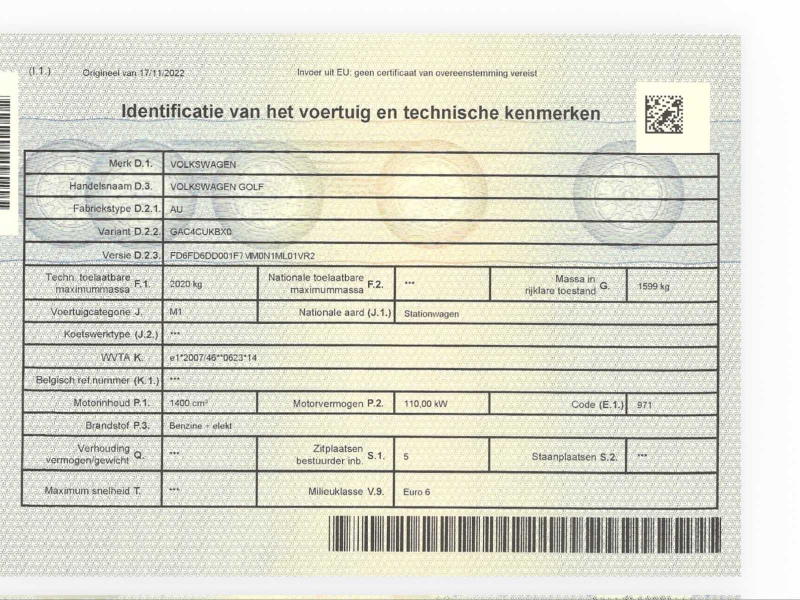De wagen in geherprogrammeerd voor meer vermogen: 384 hp (Tuning Stage 1 & Stage 2). Dienstgeschiedenis: Volledig en beschikbaar, met de originele schampalment. Prestaties en verbeteringen: . Fase 1 Chiptuning op de 1.4 TSI GTE-motor. Stage 2 DSG Tuning voor betere transmissierespons. TTE290 Turbo voor verhoogde prestaties. Nieuw accupakket vervangen bij Volkswagen. K&N prestatiefilter voor betere luchtinlaat. Roestvrijstalen uitlaat (RVS) met koolstofuitlaatkleppen en klepregeling. Originele uitlaat werd bij het voertuig geleverd. Dubbele sportkatalysator en 2 achterste sportschokdempers. Sportvering: Eibach-veren + Bilstein schokdempers, gehomologeerd, zorgen voor een dynamische en stabiele rijervaring. Leer en Alcantara stuur voor optimale grip. Digitale klokken en Virtual Cockpit volledig vervangen. Verbeterde navigatie: Het navigatiesysteem is vervangen door een groter, krachtiger model. Ontwerp en exterieurapparatuur: . Maxton Design frontsplitter voor een sportievere uitstraling. Rieger Sport achterdiffuser. Gefilmd dak en getinte achterruiten. Comfort en technologie: . Automatische airconditioning. . Origineel navigatiesysteem. . Cruise control. Stuurbekrachtiging. Metallic verf. Lichtmetalen velgen. Parkeersensoren voor en achter. Achteruitrijcamera. Virtual Cockpit en digitale klokken werden vervangen door een modern display. Focal audiosysteem voor uitzonderlijke geluidskwaliteit. Extra accessoires: Twee laders waren inbegrepen: een huishoudelijke stopcontactlader en een netoplader om de batterij gemakkelijk thuis of op het werk op te laden. . Merk: Volkswagen Model: Golf GTE 1.4 TSI Hybrid Bouwjaar: 2015 Afgelezen kilometerstand: 202194km Cilinderinhoud: 1400cc Vermogen (kW): 110kW Brandstof: Benzine + elektrisch Chassisnummer: WVWZZZAUZFW808090 Datum eerste toelating: 07/07/2015 Aantal zitplaatsen: 5 Kleur: Champange Transmissie: Automaat DSG Emissieklasse: Euro 6 Aantal deuren: 5 Nationaliteit documenten: Belgische Vavato voert geen technische keuring uit.: waar Airconditioning: true Navigatie: true LED-koplampen: true