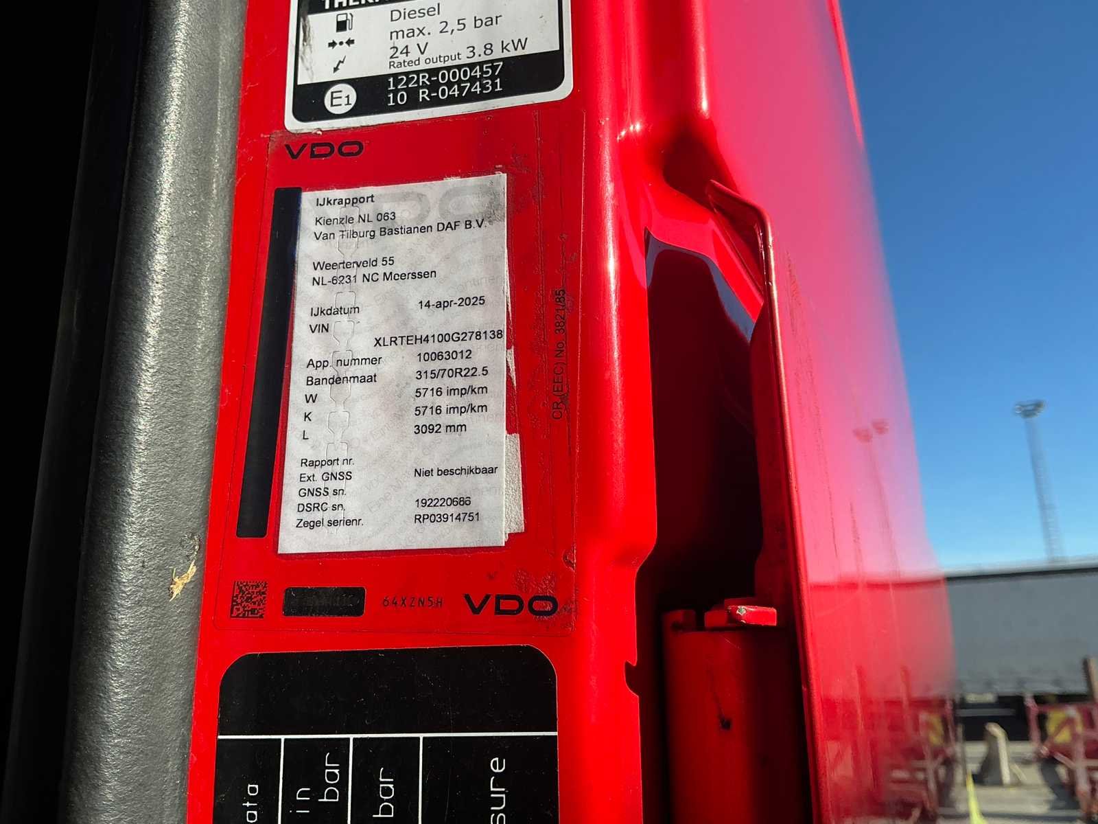 Opgelet: Nederlandse boorddocumenten, Techn. Max.Massa: 20500kg, Toeg.Max.Massa: 19000kg, Toeg.Max.Massa.Samenstel: 50000kg, 330kw; eerste toelating: 01/07/2019, Apk vervaldatum: 09/07/2026 Kenteken: 17-BNN-4 Merk: DAF Type: XF450FT TR4x2 COM KIP Bouwjaar: 2019 Chassisnummer VIN: XLRTEH4100G278138 Cilinderinhoud: 10837cc APK vervaldatum: 2026-07-09 Datum eerste toelating: 2019-07-01 Datum eerste toelating (NL): 2019-07-01 Type transmissie: Automatisch Aantal assen: 2 Fuel Type: Diesel Laadvermogen: 11626kg Emissieklasse: 6 Slaapcabine: true Aantal zitplaatsen: 2 Automaat: true Diesel: true
