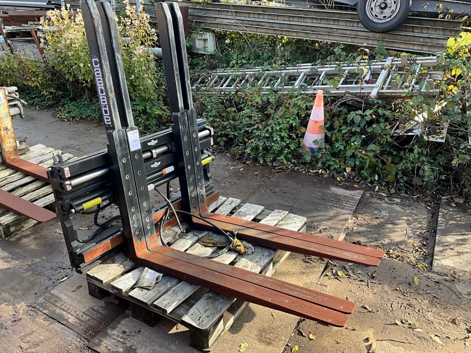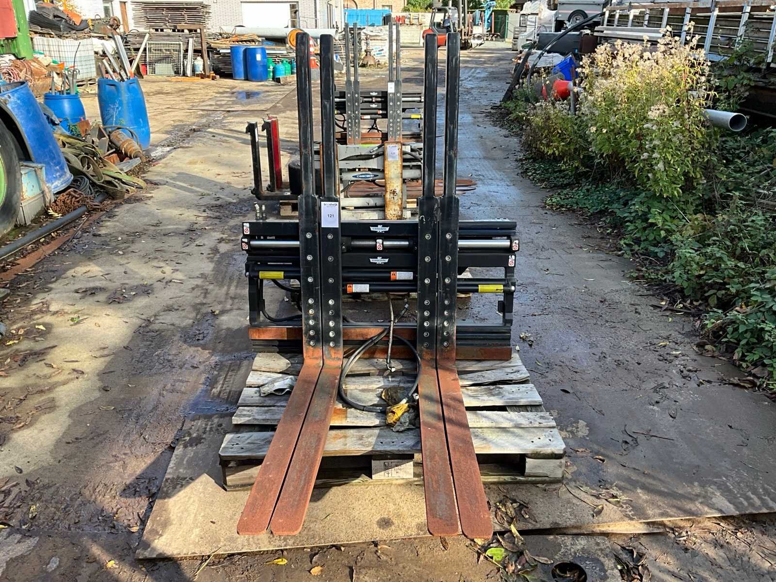 Hefvermogen 2800 kg, vorkenlengte 1200 mm, voorzien van hydraulisch viervorken verstelling, side shift, ophanging 3A Merk: Cascade Type: 28G2-FDS-257 Bouwjaar: 2022 Eigen gewicht: 592kg Totale afmeting L: 1500mm Totale afmeting Breedte: 1200mm Totale afmeting Hoogte: 1400mm