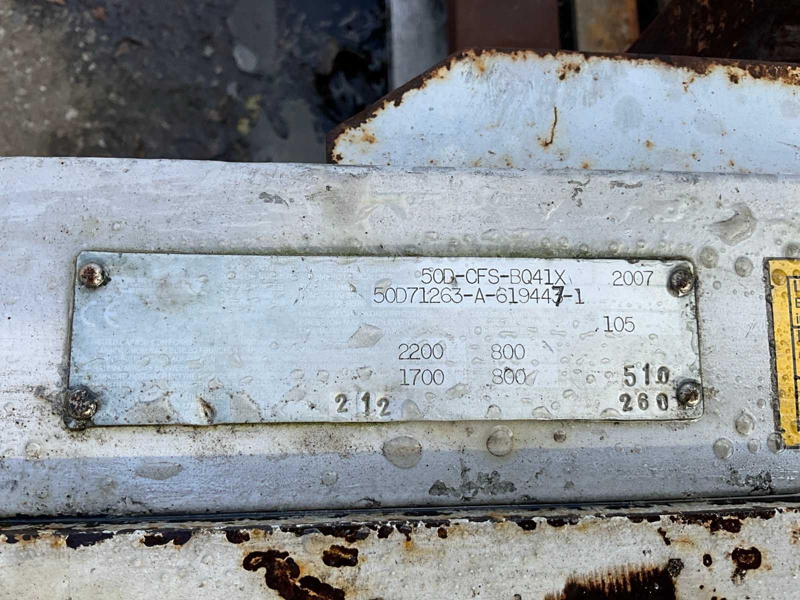 Hefvermogen 2200 kg, vorkenlengte 1500 mm, ophanging klasse 3A Merk: Cascade Type: 50D-CFS-BQ41X Bouwjaar: 2007 Eigen gewicht: 510kg Totale afmeting L: 1770mm Totale afmeting Breedte: 1300mm Totale afmeting Hoogte: 800mm