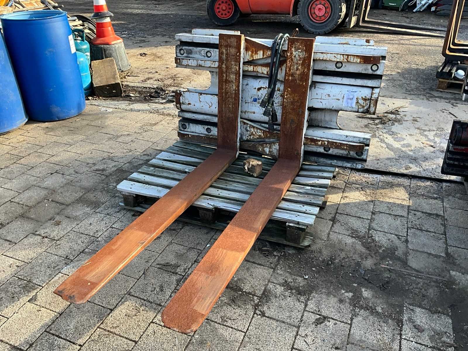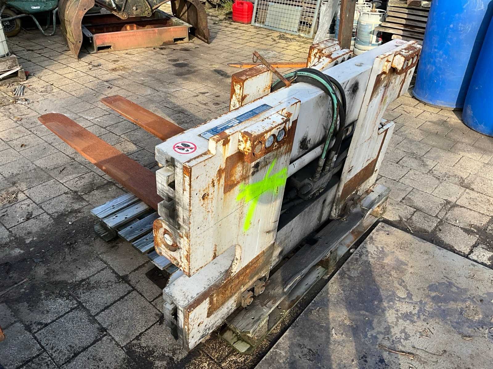 Hefvermogen 4500 kg, vorkenlengte 1500 mm, ophanging klasse 4A, snelwisselhaken ontbreken, 4x hydraulische slang Merk: Cascade Type: 70D-CFS-CA61X Bouwjaar: 2006 Eigen gewicht: 769kg Totale afmeting L: 1800mm Totale afmeting Breedte: 1380mm Totale afmeting Hoogte: 800mm