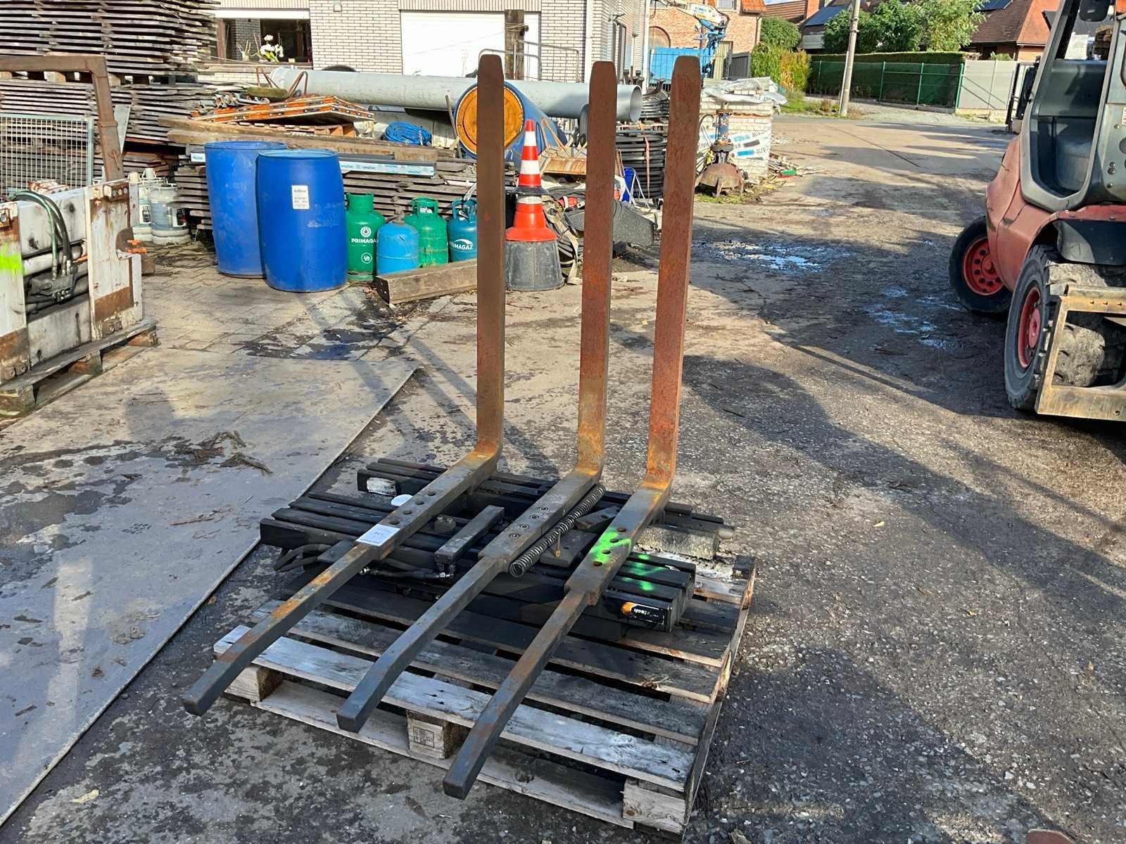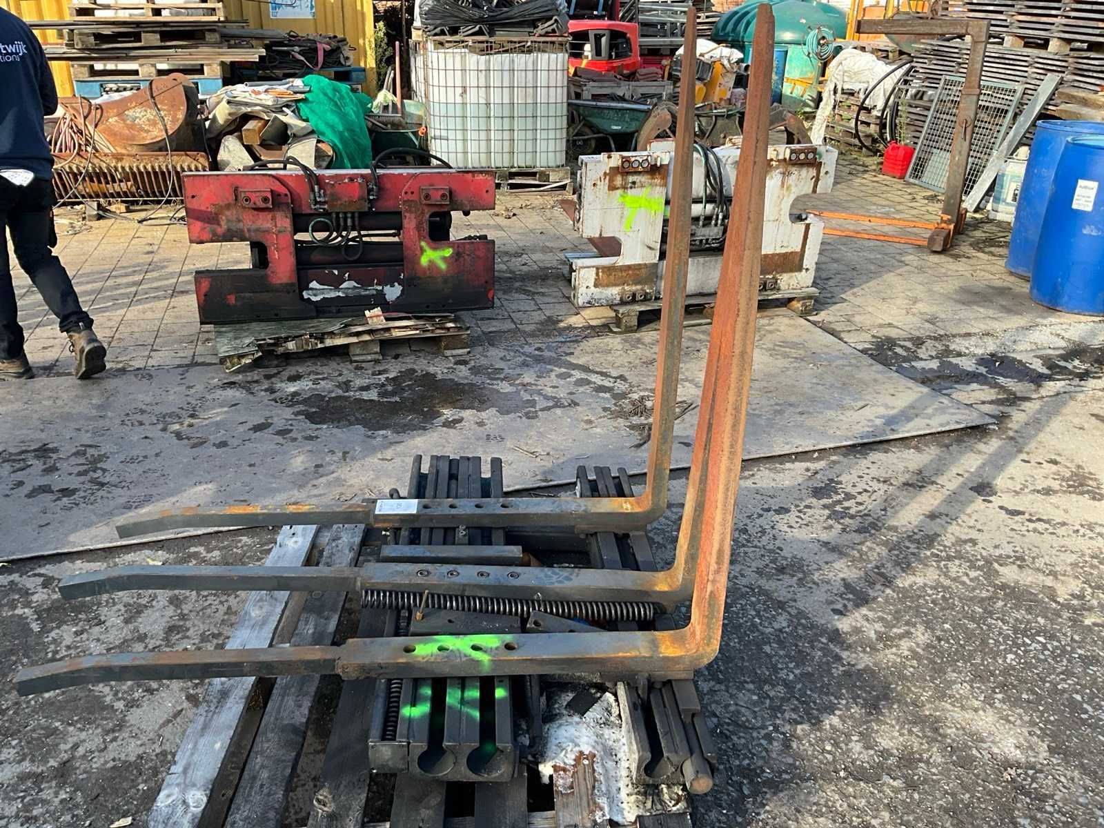 Hefvermogen 2400 kg, vorkenlengte 1200 mm, 1 vork ontbreekt!!!, voorzien van hydraulisch viervorken verstelling, side shift, ophanging 3A Merk: Griptech Type: DVV 24 S Bouwjaar: 2018 Eigen gewicht: 508kg Totale afmeting L: 1400mm Totale afmeting Breedte: 1740mm Totale afmeting Hoogte: 1400mm