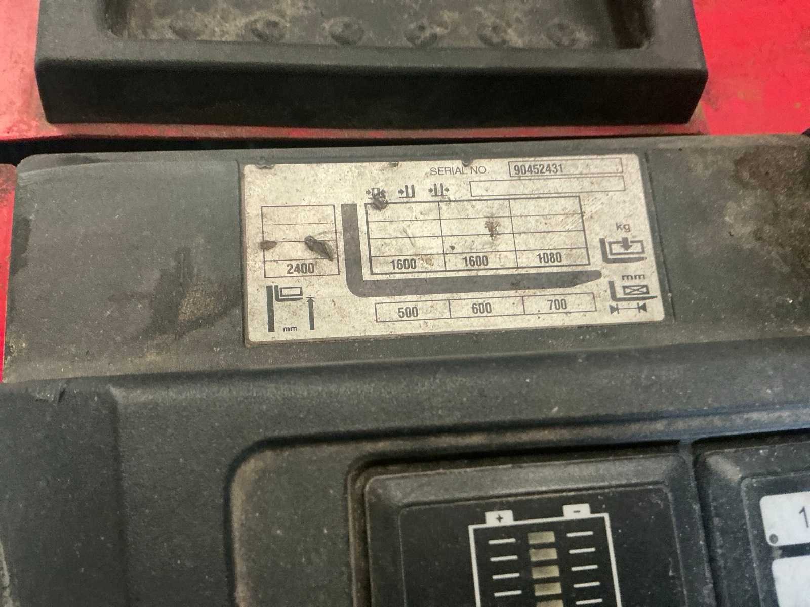 Niet werkend! Zonder accu lader Merk: Jungheinrich Type: ERC216 Bouwjaar: 2014 Serienummer: 90452431 Hefvermogen: 1600kg Hefhoogte: 2400mm Lepellengte: 1390mm Eigen gewicht: 1242kg Minimale doorrijhoogte: 1700mm Totale afmeting L: 2880mm Totale afmeting Breedte: 790mm Totale afmeting Hoogte: 1700mm Meerij stapelaar: true