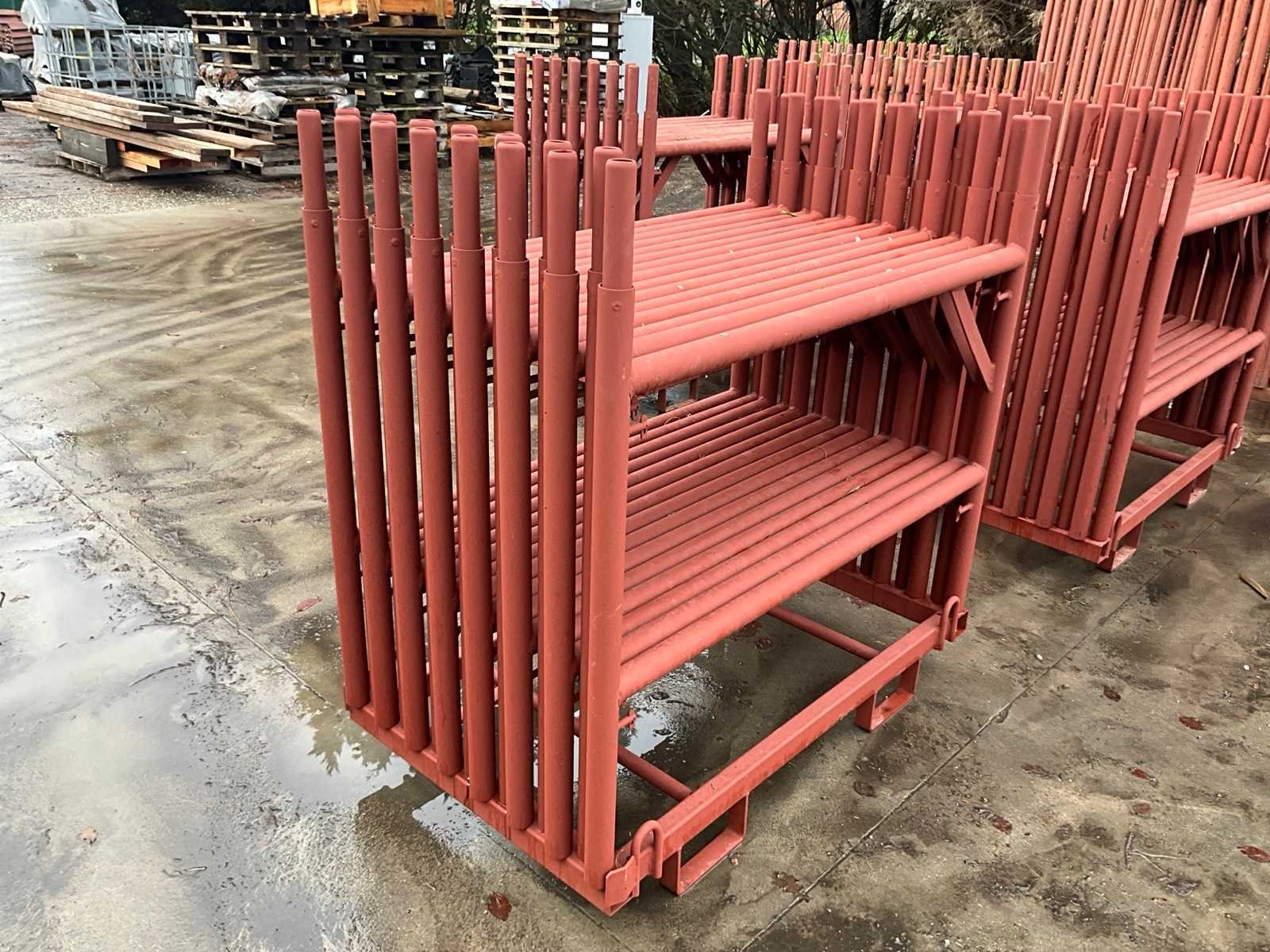 Metalen staanders zo goed als nieuw, elk met afmeting 130 x 115 cm hoog op bijhorende stapelbok. Totale afmeting Breedte: 130mm Totale afmeting Hoogte: 1150mm