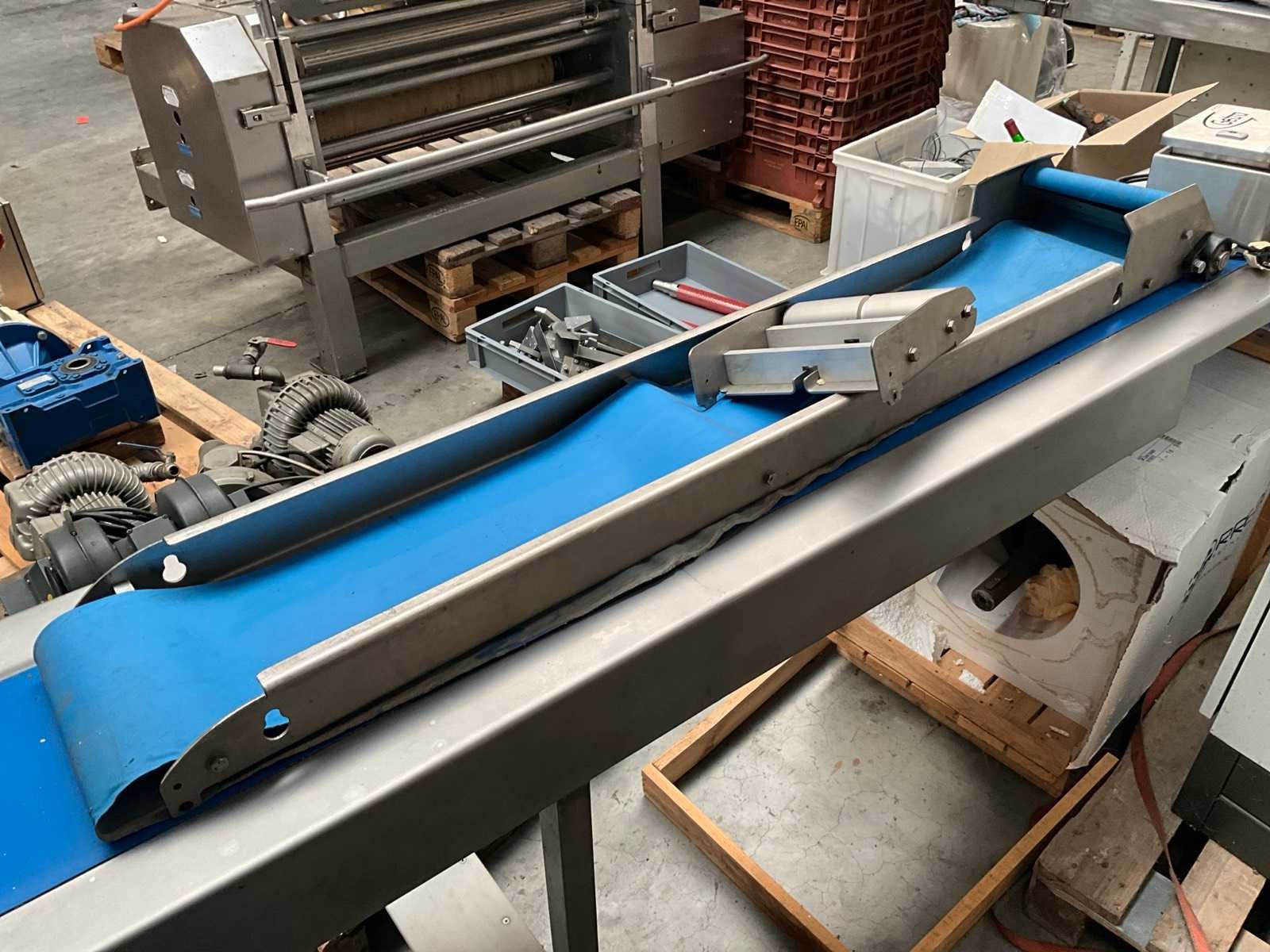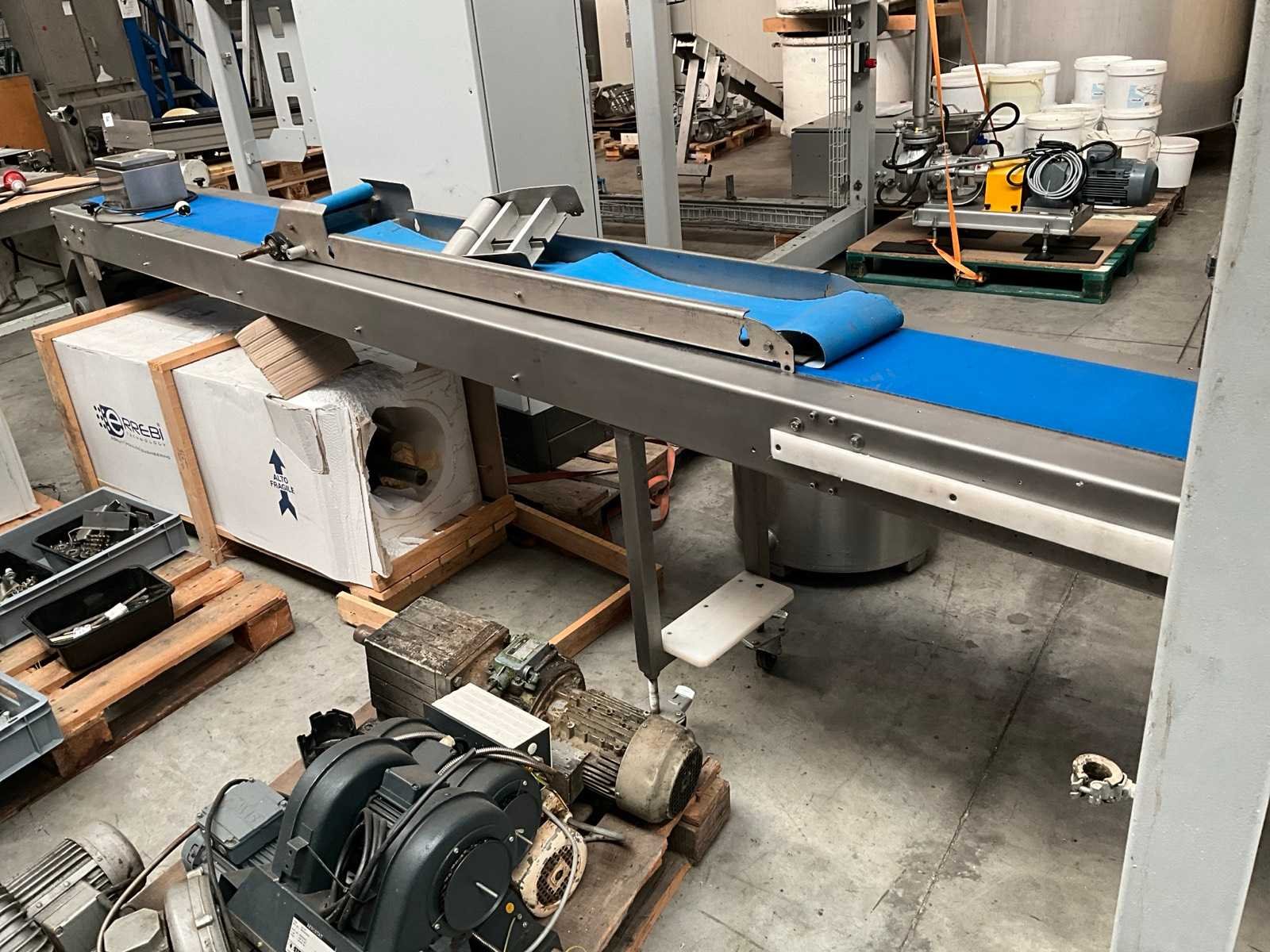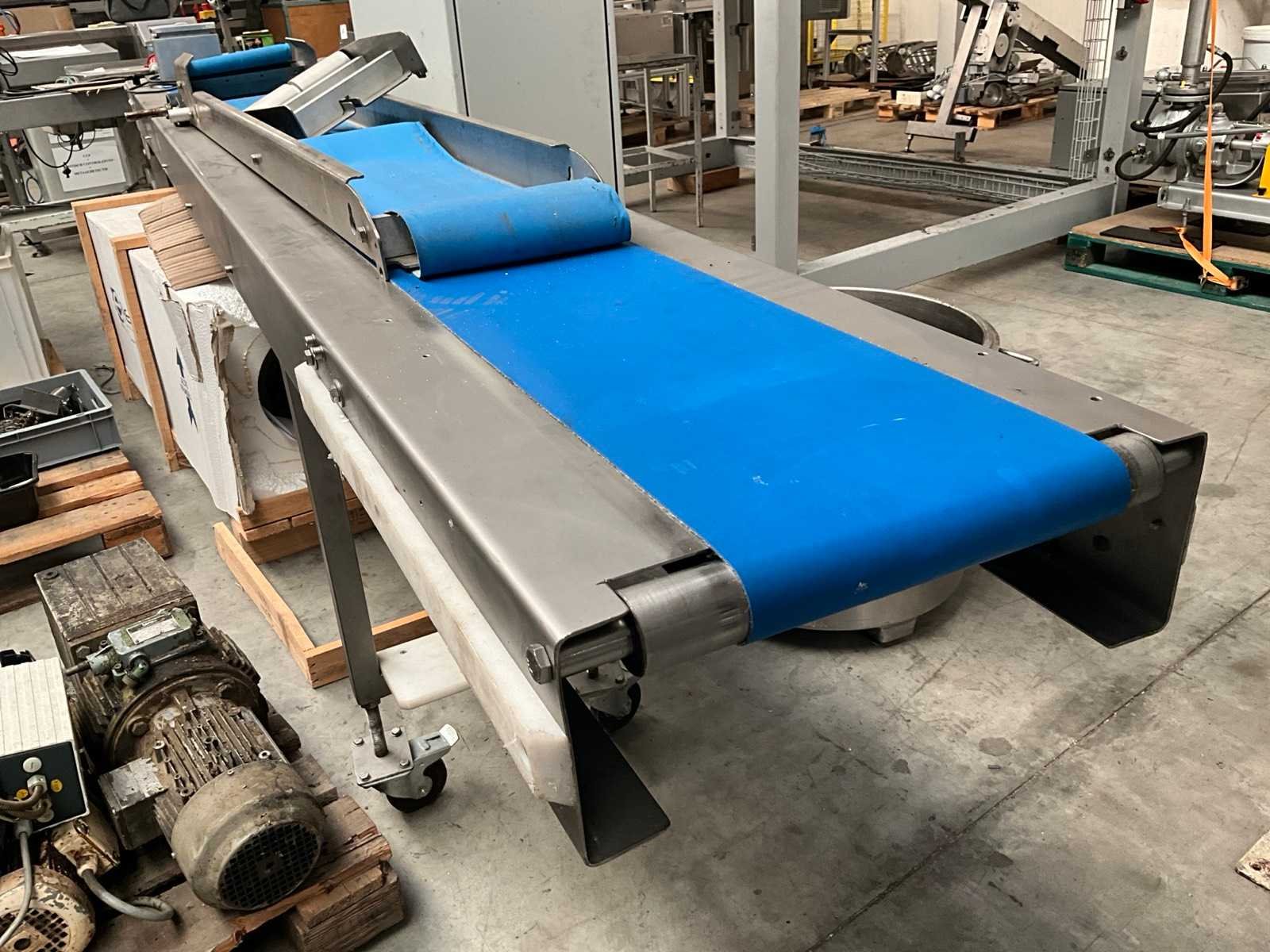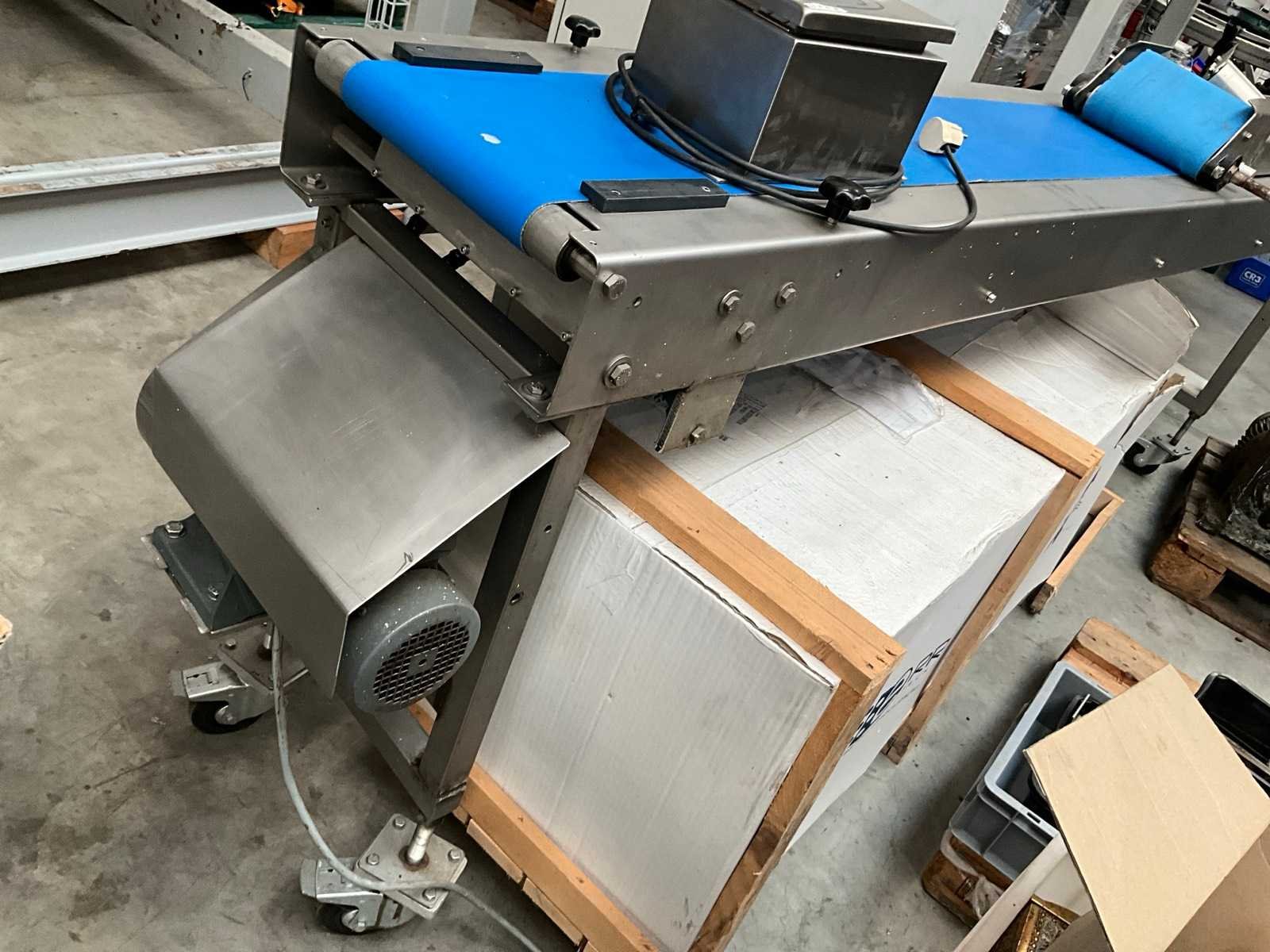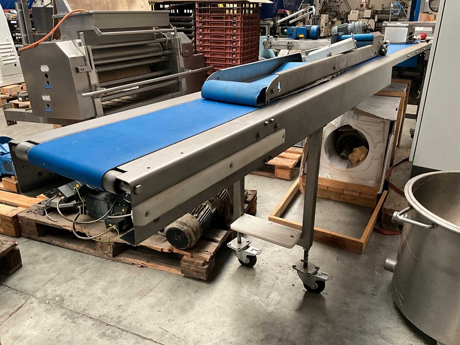 Compleet met transportband met afmetingen 160 x 35cm en rvs schakelkast getekend Getra Band afm. l: 250mm Totale afmeting L: 3600mm Totale afmeting Breedte: 420mm Totale afmeting Hoogte: 950mm