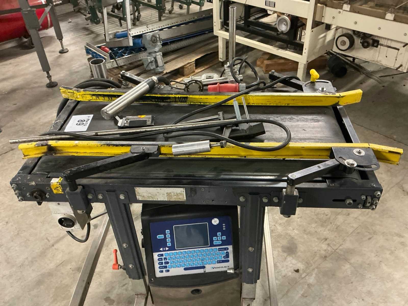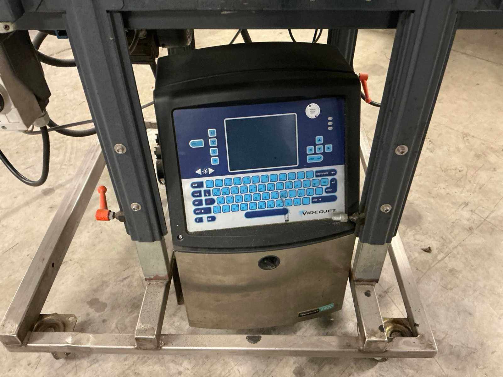 Compleet met ICJ printer Videojet 1520. Merk: Siat Type: CE1/500 Totale afmeting L: 1100mm Totale afmeting Breedte: 800mm Totale afmeting Hoogte: 900mm