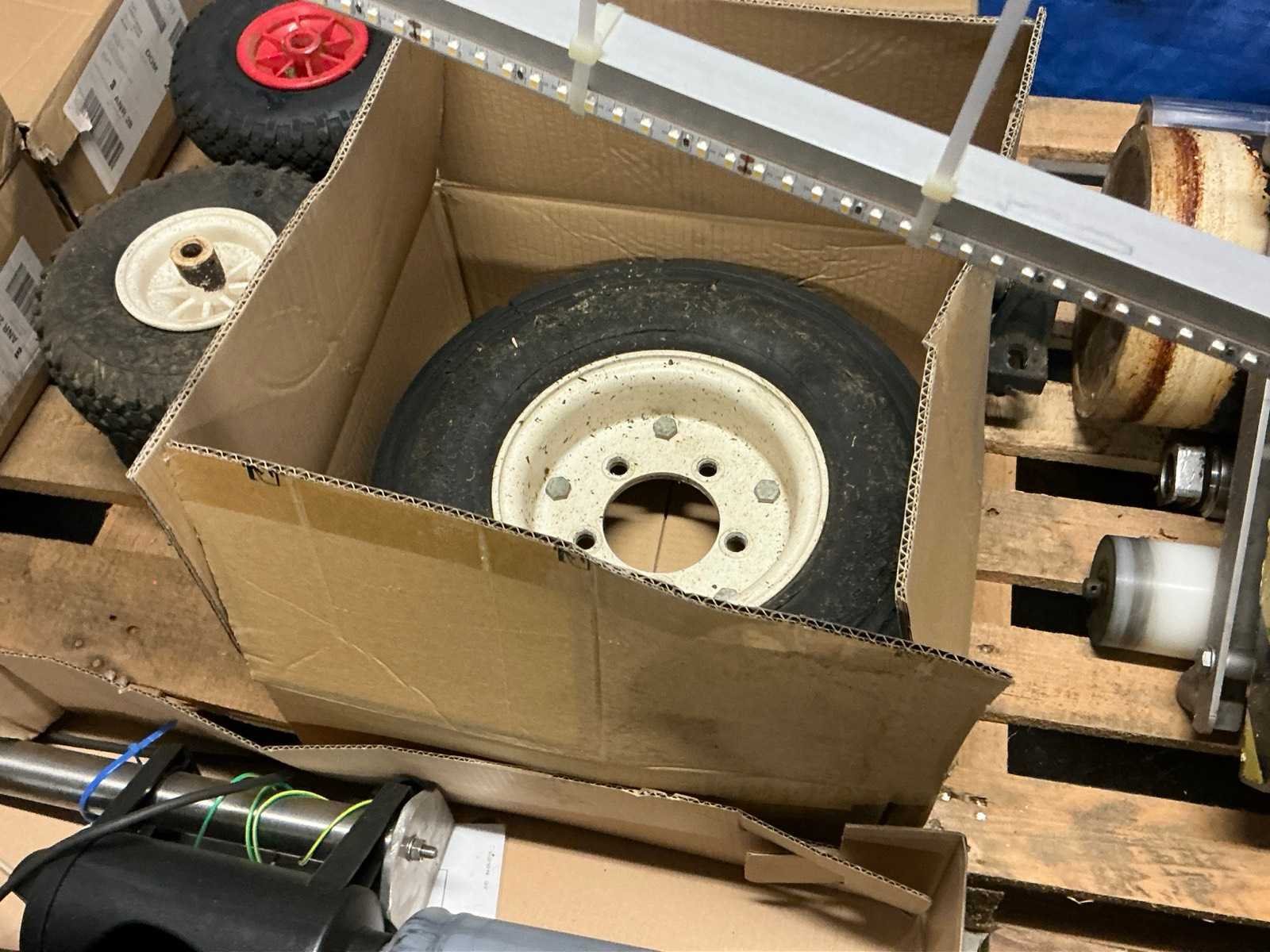 Waaronder vooral onderdelen en stukken voor bakkerijmachines. Liggende op 10x palletten.