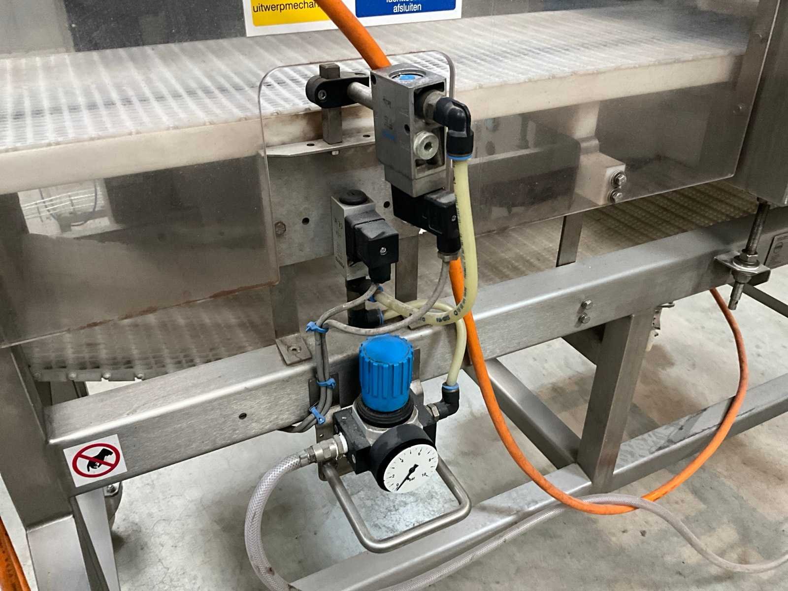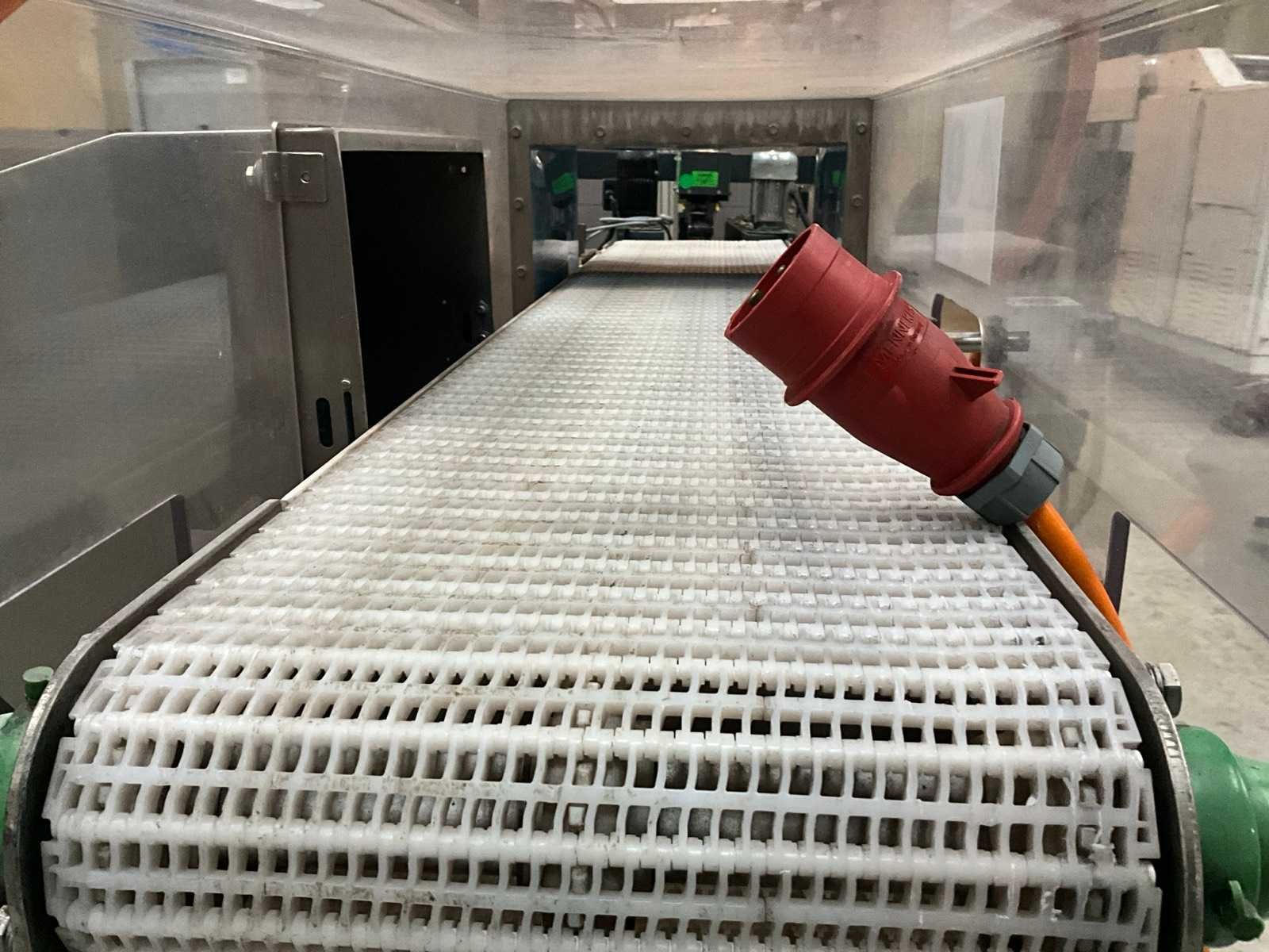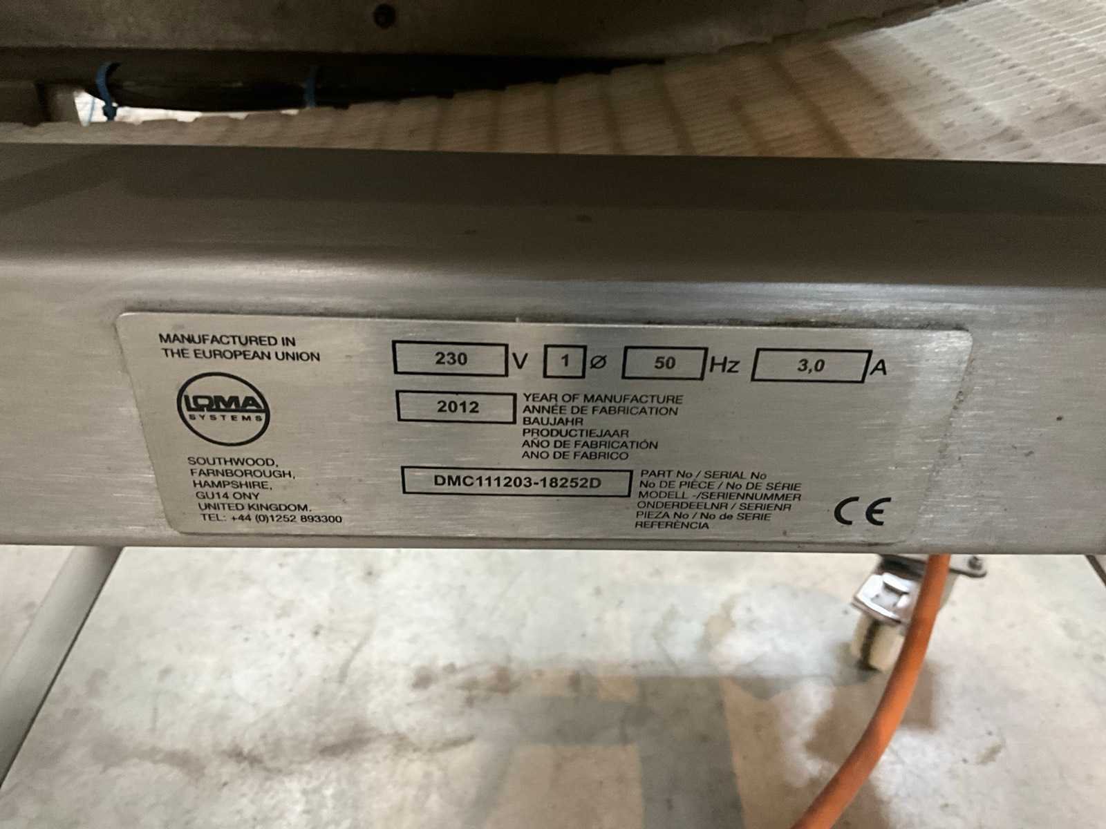 Breedte transportband 32cm. Merk: Loma Type: MD304-18251D Bouwjaar: 2012 Aansluiting: 230V Totale afmeting L: 1850mm Totale afmeting Breedte: 1100mm Totale afmeting Hoogte: 1360mm