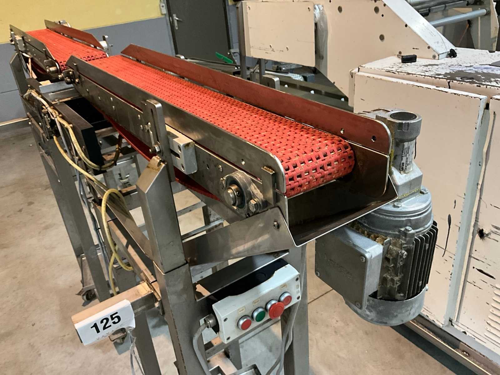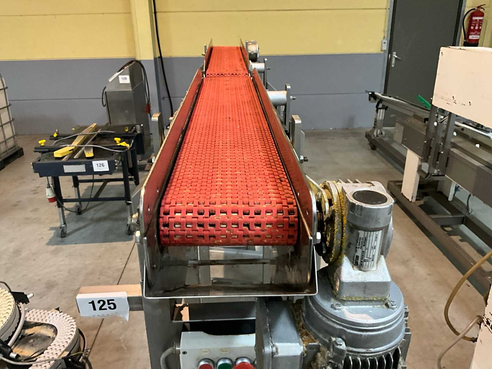 Breedte transportband 15cm. Totale afmeting L: 2100mm Totale afmeting Breedte: 580mm Totale afmeting Hoogte: 1570mm