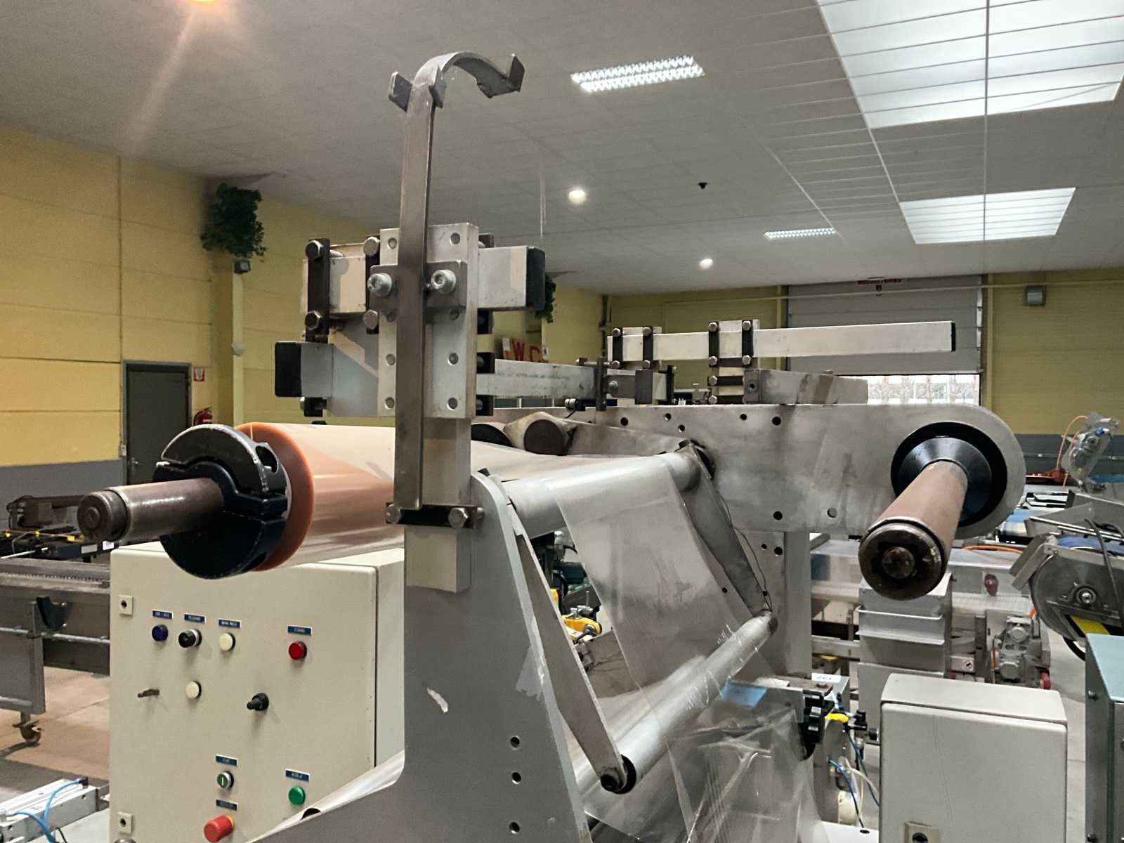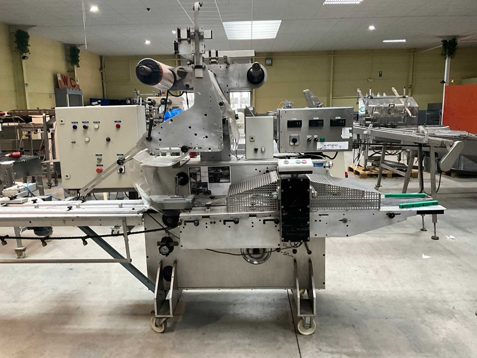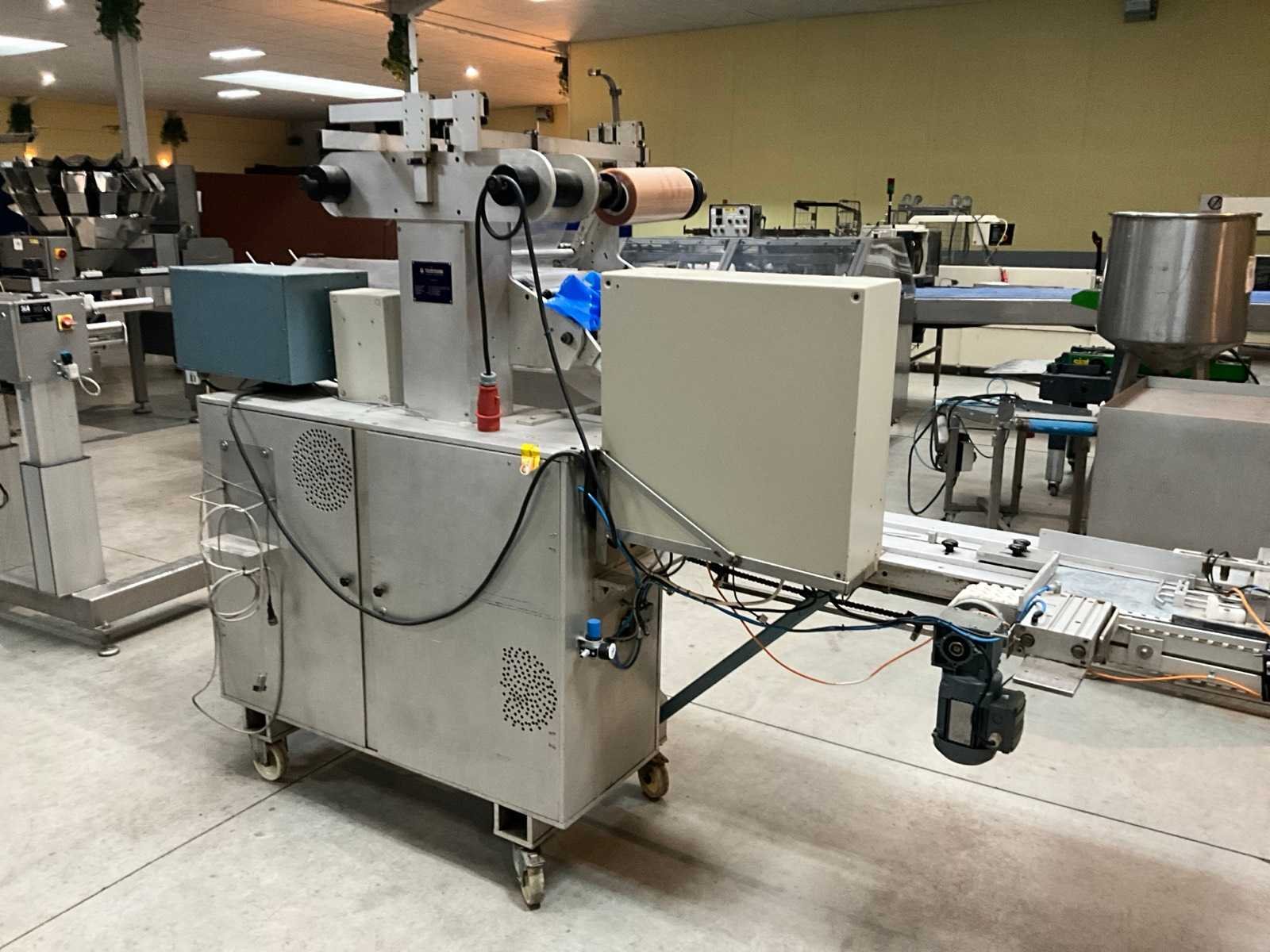Merk: Tevopharm Type: Pack V Transportband afm. b: 190mm Totale afmeting L: 4800mm Totale afmeting Breedte: 1100mm Totale afmeting Hoogte: 2100mm