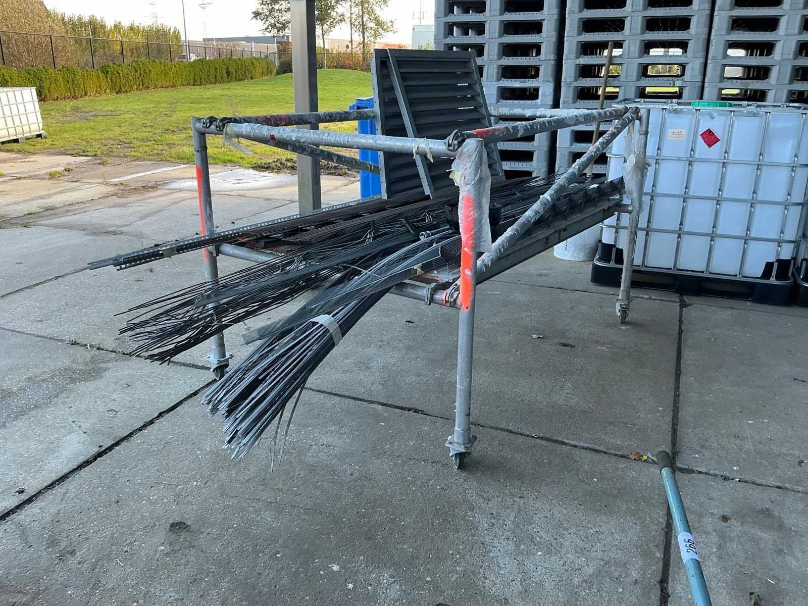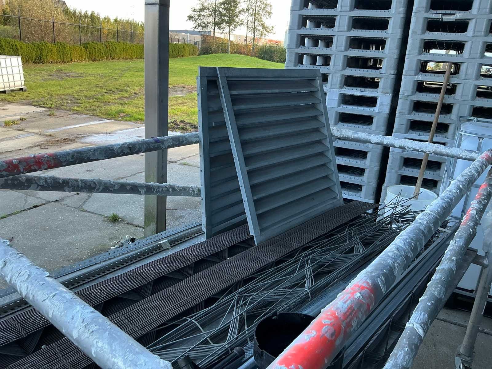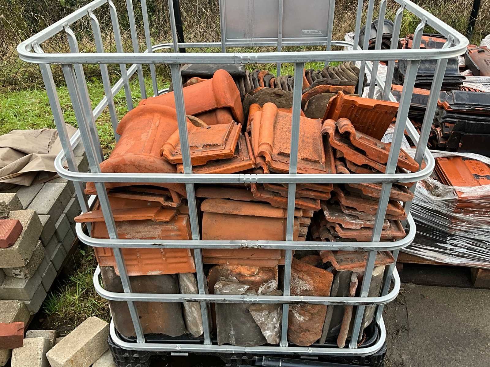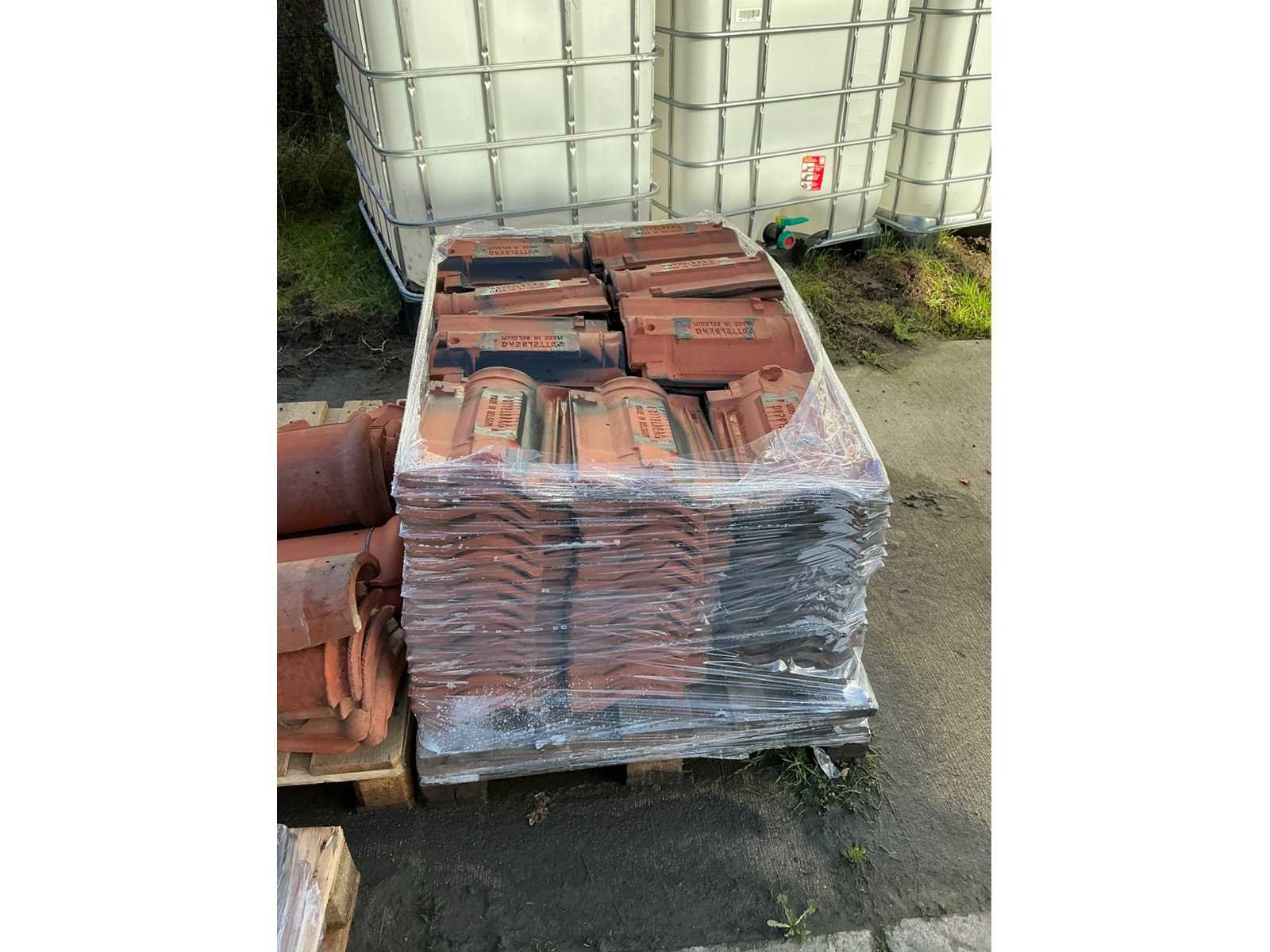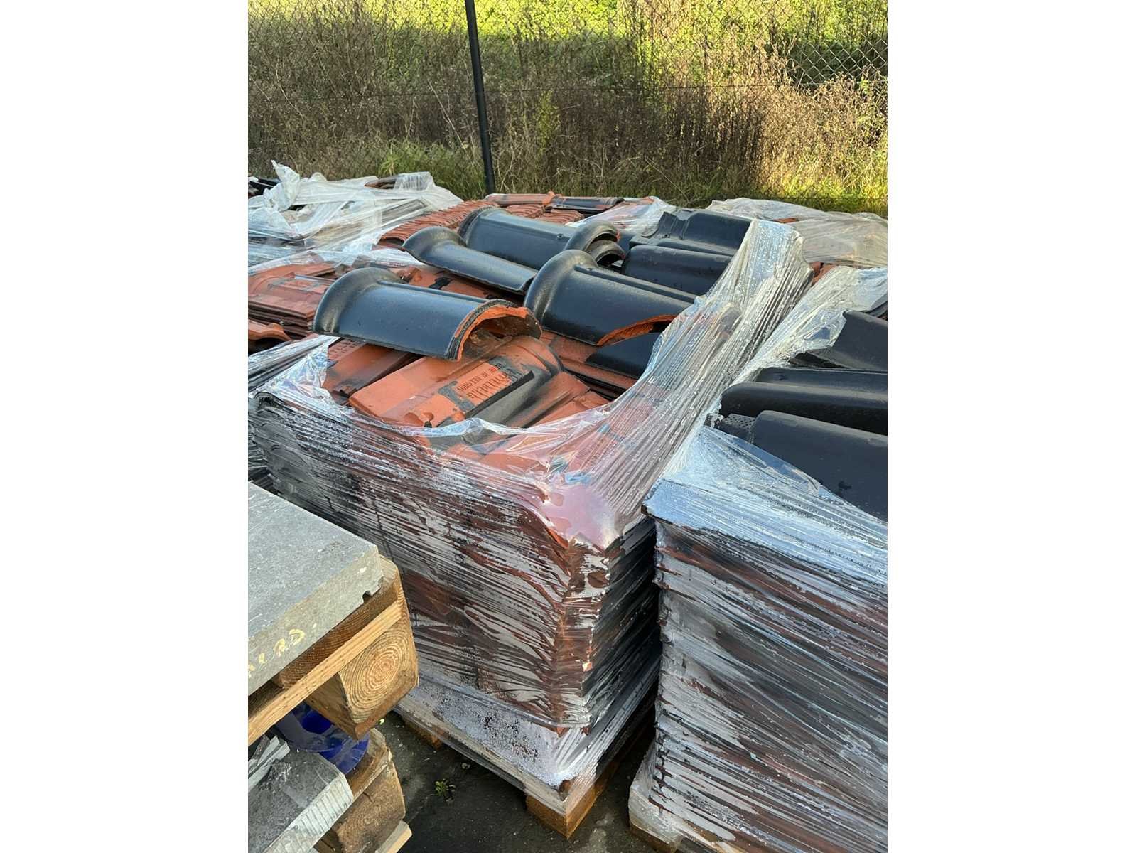 Waaronder diverse dakpannen liggende op 11 pallets, snelbouwstenen waaronder Wienerberger, diverse profielen liggende op verrijdbare stelling, 7 IBC containers waaronder 1 gevuld met rijnzand en 2 met basalt stenen, liggende op 17 palletten excl. IBC containers.