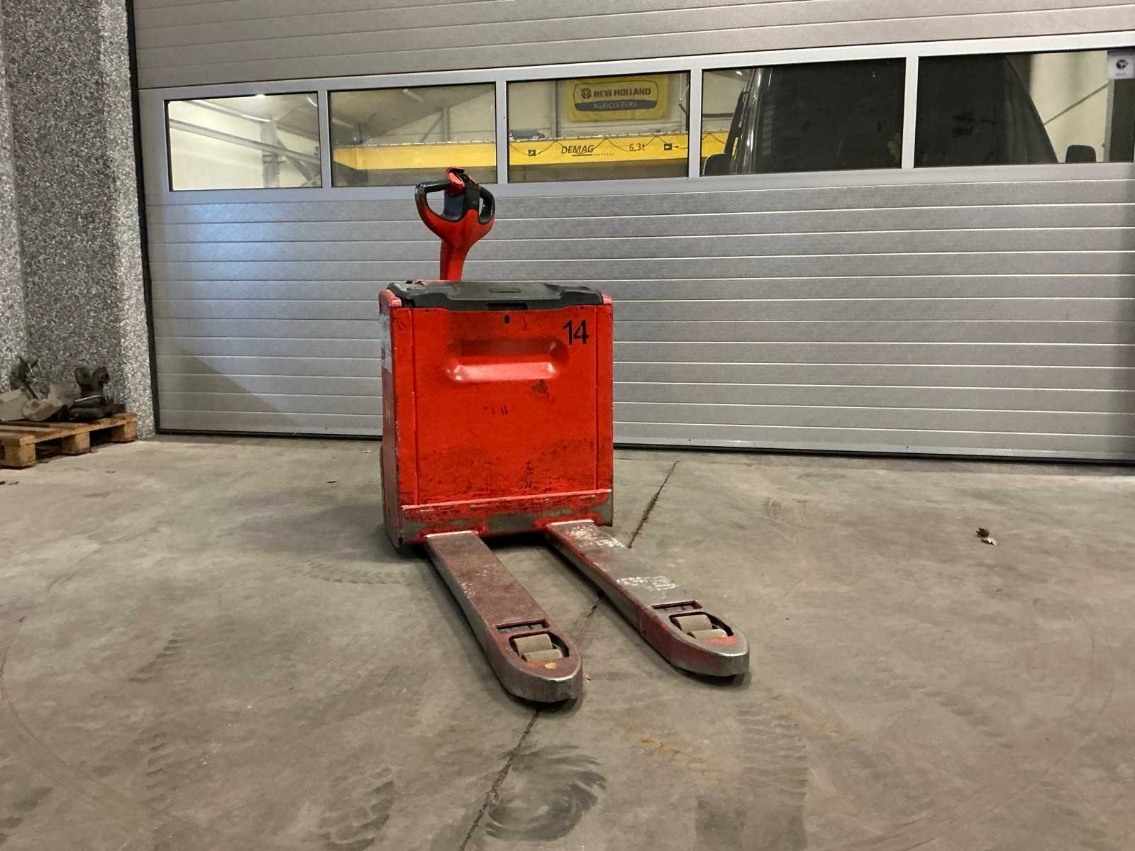 Merk: Linde Type: T18 Bouwjaar: 2015 Serienummer: W41152F00109 Hefvermogen: 1800kg Lepellengte: 1150mm Afgelezen urenstand: 4350 Eigen gewicht: 490kg Totale afmeting L: 1800mm Totale afmeting Breedte: 800mm Totale afmeting Hoogte: 1300mm
