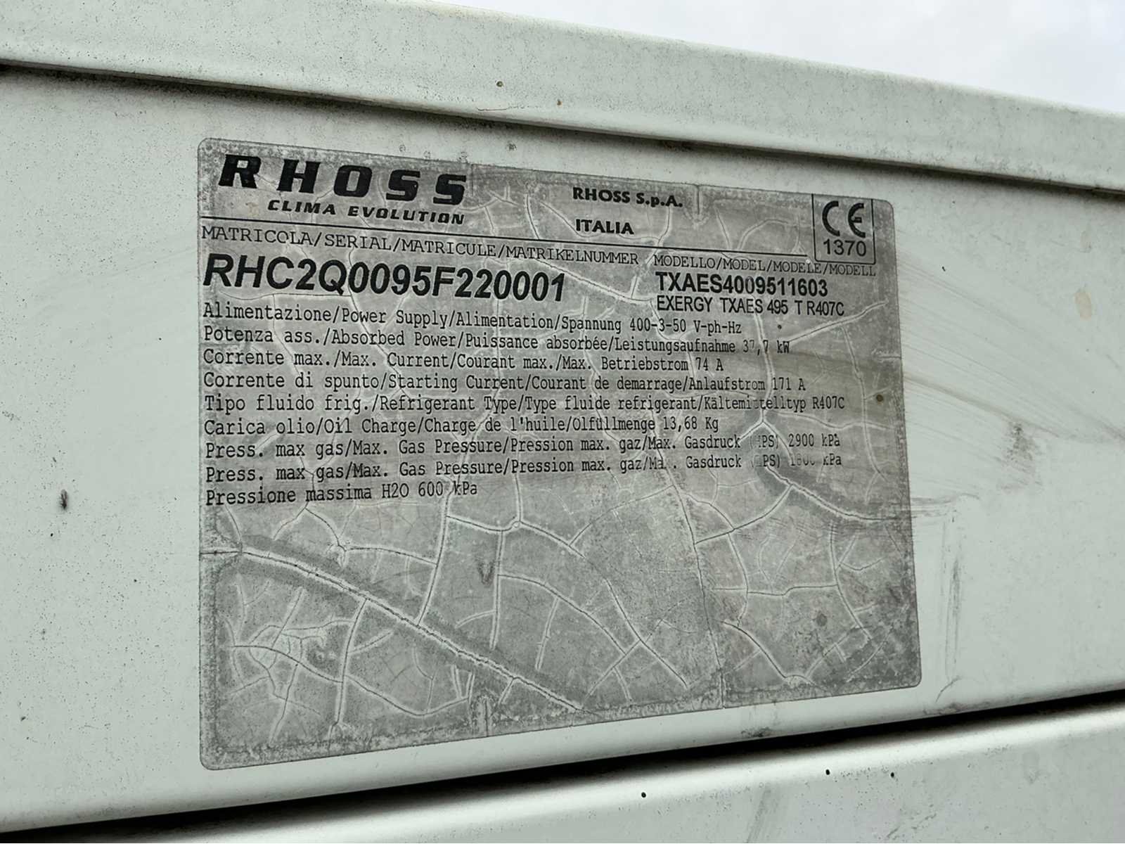 Werkend afgebroken ongeveer 12 maanden terug. Technische fiche bij fotos! Merk: Rhoss Type: TXAES 495 T&P1 Bouwjaar: 2018 Vermogen: 100kW