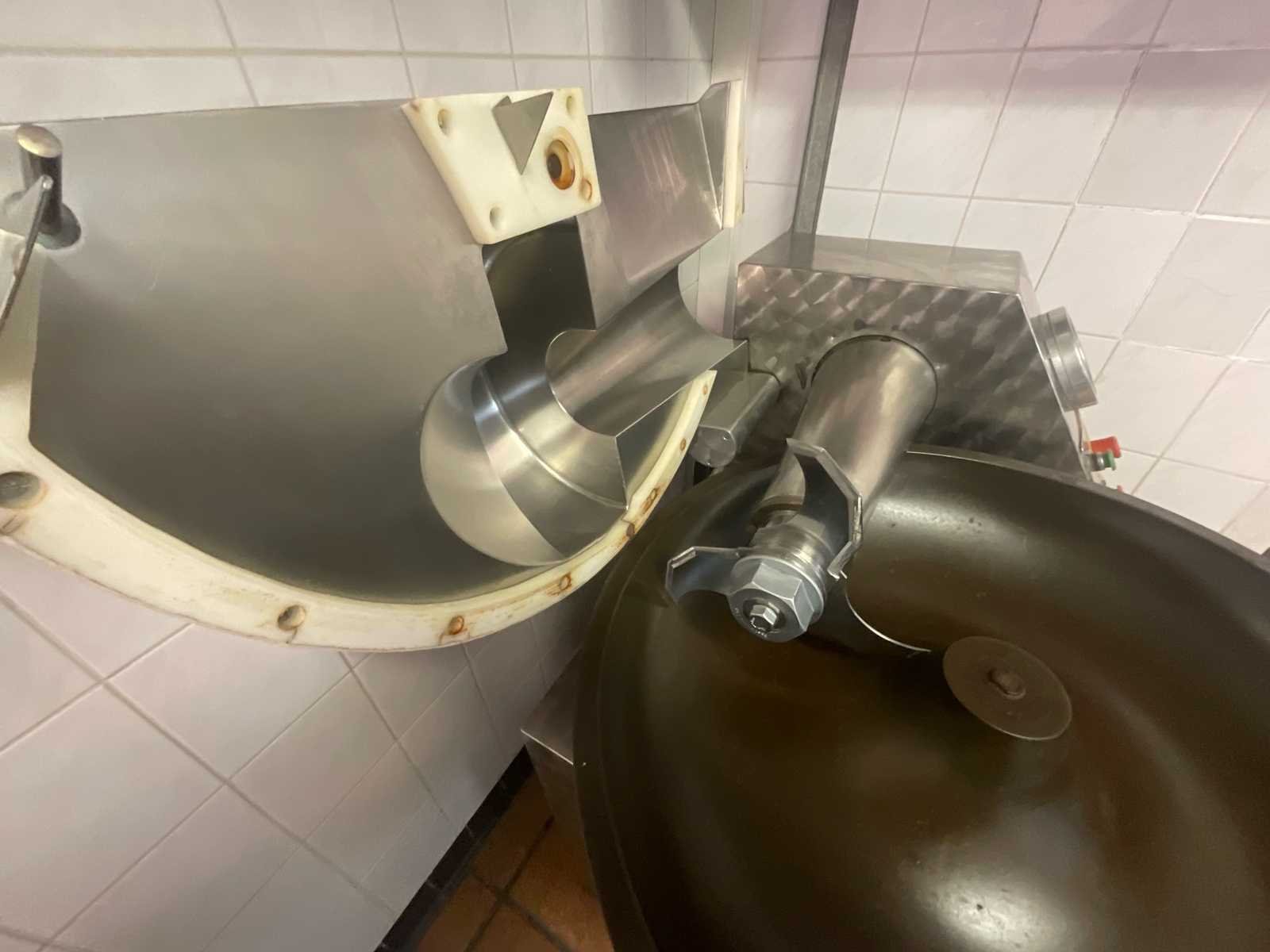 Alexanderwerk professionele industriële snijder, 40 liter capaciteit, voor de bereiding van vlees, vleeswaren, pasteitjes, vullingen of voedselemulsies. Robuuste en betrouwbare machine, gemaakt in Duitsland, volledig van roestvrij staal. Het apparaat werkt goed en is altijd met zorg onderhouden. De snijder is uitgerust met een roestvrijstalen roterende kom, een snijkop met roterende messen, een ophefbare veiligheidskap, een drukmeter en eenvoudige bedieningselementen (aan, uit, noodstop). Het zijkantelsysteem maakt het gemakkelijk om preparaten te legen Torenteller die niet meer werkt Merk: Alexenderwerk Type: K40 Bouwjaar: 1995 Aansluiting: 400V Eigen gewicht: 300kg