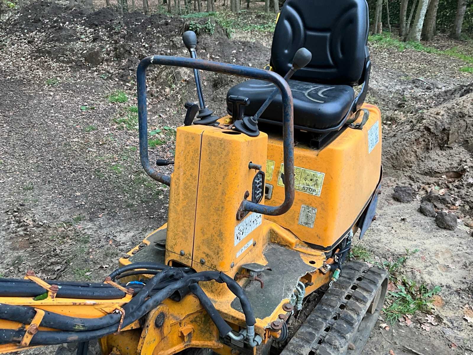 Compacte rups-minigraver in de 1-tons klasse, voorzien van rubber rupsen en standaard graafbak. De machine heeft een uurstand van 1180 uur (Hobbs-meter) en is geschikt voor lichte grondwerken, tuinbouw, opritwerken en kleine kraanopdrachten. De minigraver is uitgerust met joystickbediening, beschermrek en een dieselmotor (typeplaat niet zichtbaar). Ideaal voor bedrijven of particulieren die een compacte en wendbare machine zoeken voor uiteenlopende klussen. De machine is visueel gebruikt en toont sporen van slijtage, maar vormt nog een degelijk basisplatform voor renovatie of dagelijks werk. Kenmerken: Rups-minigraver, ca. 1 – 1,3 ton - Diesel aangedreven - Voorzien van standaard graafbak + extra graafbak (INCLUSIEF 2 GRAAFBAKKEN) - Rubberen rupsen - Joystickbediening - Compact model, GESCHIKT VOOR SMALLE DOORGANGEN - PAST DOOR DEUROPENING - Staat: Gebruikt, met zichtbare cosmetische slijtage, zijkant ontbreekt stuk afdichting (zie laatste foto) MAAR FUNCTIONEEL Merk: Hanix Type: H15B Inclusief graafbak: Yes Afgelezen urenstand: 1180