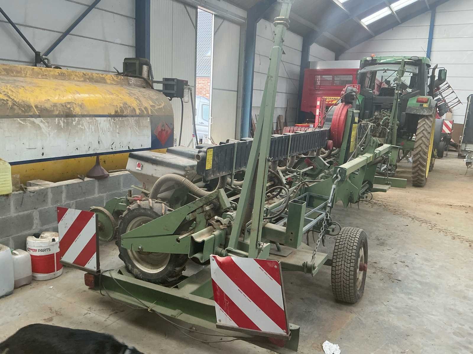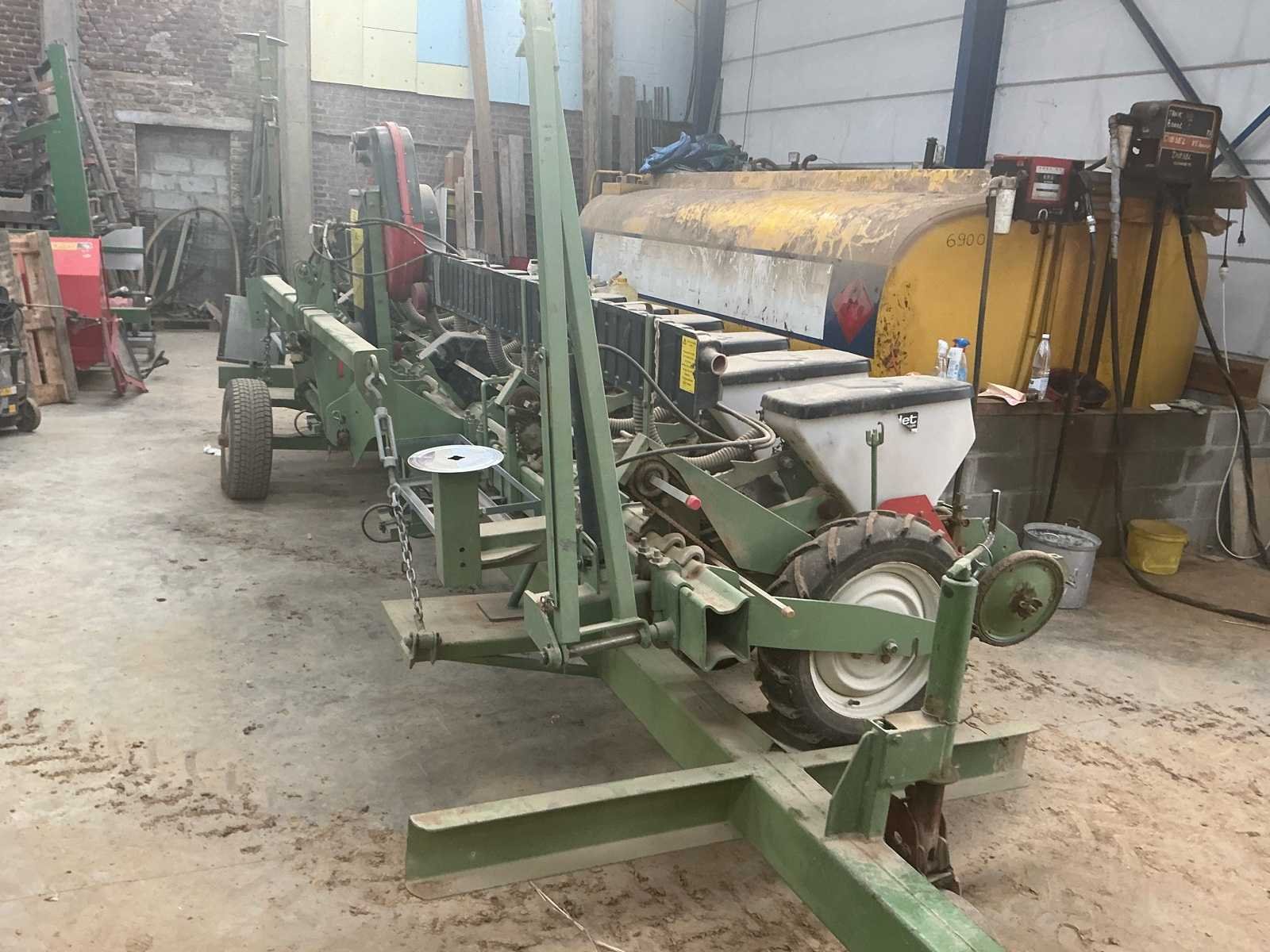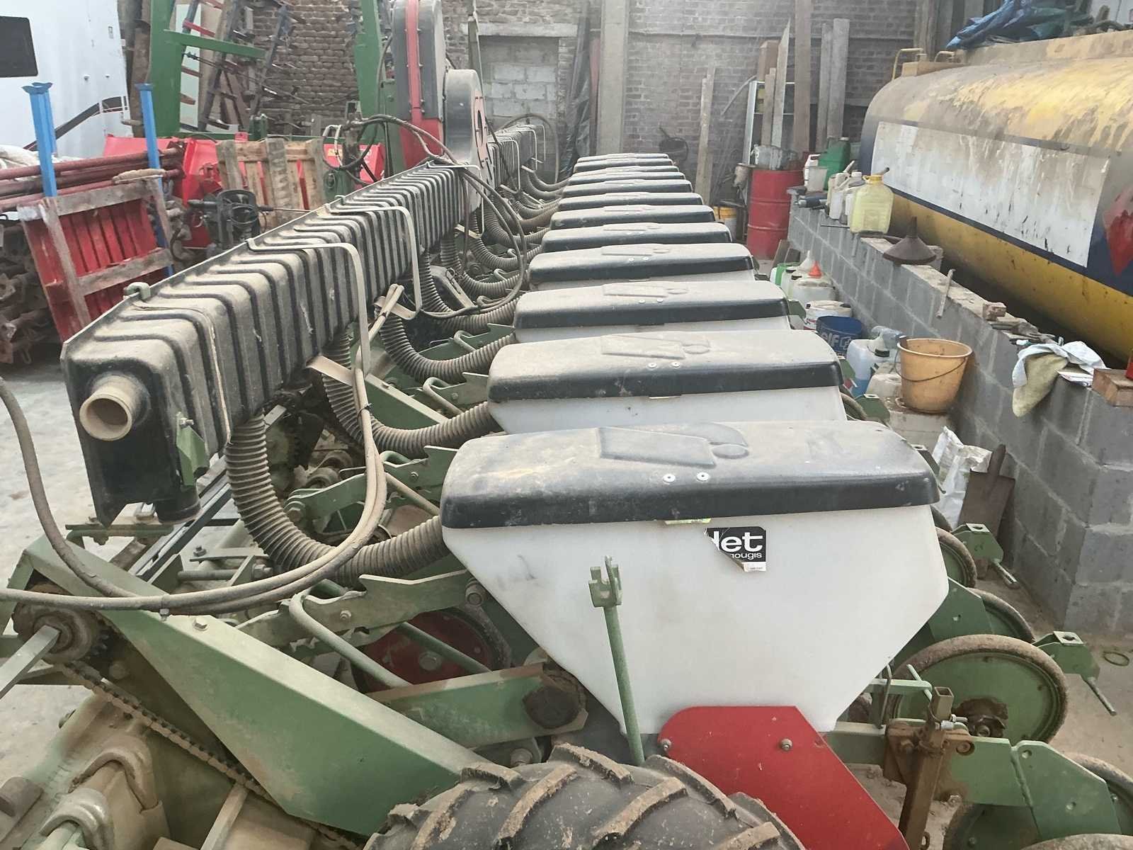 Professionele 12-rijige pneumatische precisiezaaimachine van het merk Nodet Gougis, gekend om zijn betrouwbare en eenvoudige techniek. Deze machine heeft een werkbreedte van ca. 6 meter dankzij een rijafstand van 50 cm, Momenteel afgesteld op 45 cm waardoor ze ideaal is voor bieten, bonen, erwten, koolzaad en andere fijne zaden. Momenteel staat de zaaimachine in bieten afstelling. De machine is compleet uitgerust met pneumatische zaadverdeling, individuele zaaielementen en verstelbare elementen op schaalverdeling. Met andere schijven aanwezig. De zaaimachine is niet intensief gebruikt, meestal voor kleinere velden. Schijven voor witloof zitten erbij, naast die voor bieten. Merk: Nodet Type: PL2 Bouwjaar: 1996 Serienummer: PL01200C000004 Werkbreedte: 6000mm Aantal rijen: 12 Rijenafstand: 45mm Markeur: true