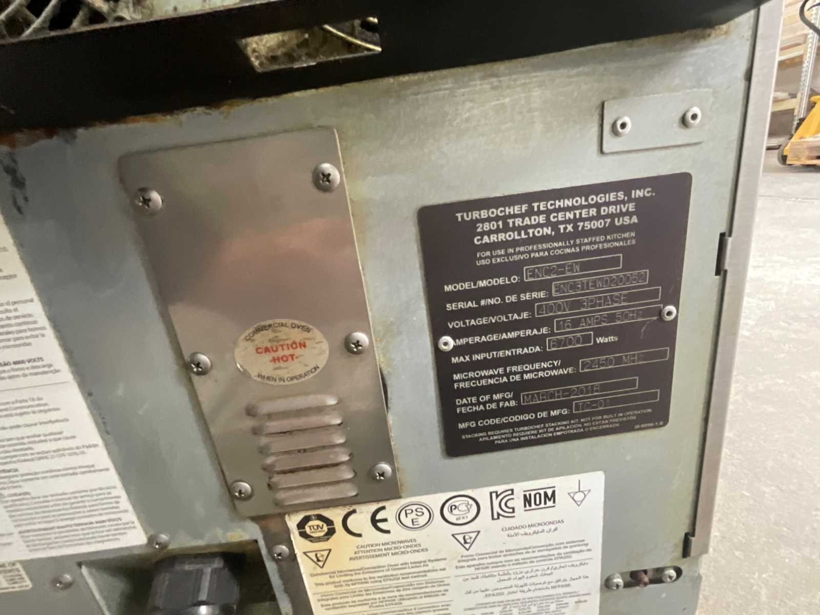 Merk: TurboChef Technologies, Inc. Model: ENC2-EN Serienummer: ENC3TEND200552 Voeding: 400V driefasig, 16A, 50Hz Vermogen: 6.700 W Microgolffrequentie: 2.450 MHz Productiedatum: maart 2016 Gebruik: Professionele oven voor ultrasnel koken (combinatie van snelle convectie + magnetron) Toepassingen: bakkerijen, broodjeszaakken, fastfood, snacks, fastfood Zichtbare status: Sporen van gebruik, vooral bij ventilatoren Volledig roestvrijstalen buitenkant, zichtbaar solide constructie Kookplaat en accessoires aanwezig Stroomkabel op zijn plaats Niet getest in gebruik op foto's Non Merk: TurboChef Type: ENC2-EN Bouwjaar: 2016 Serienummer: ENC3TEN2D00552 Rvs: true Elektrisch: true Aansluiting: 400V