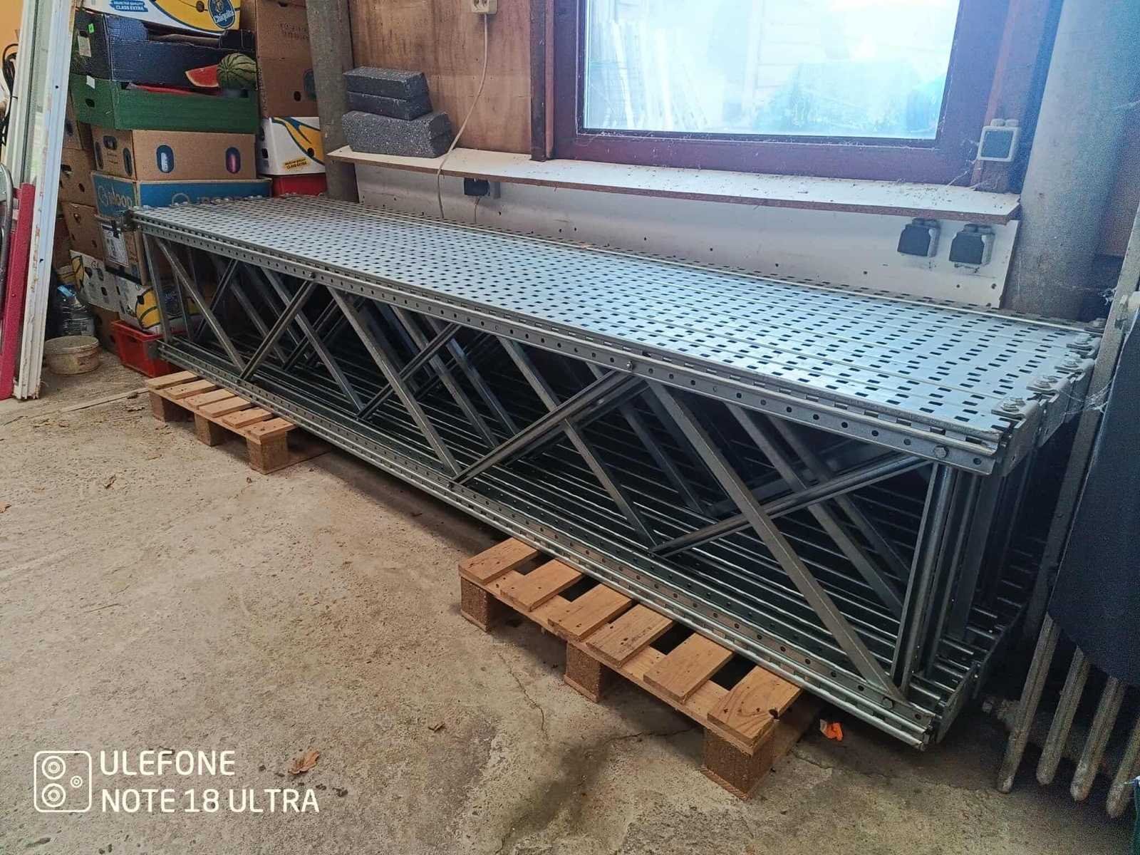 Het lot bevat verschillende onderdelen voor een stelling. In goede staat. 10 staanders van 3m10 hoog 60 cm diep. 134 Vloerplaten van 61 diep op 1m. 134 Dwarsbalken van 2m10. Type: Lot van modulaire Aantal staanders: 10 Aantal liggers: 134 Demontabel: true