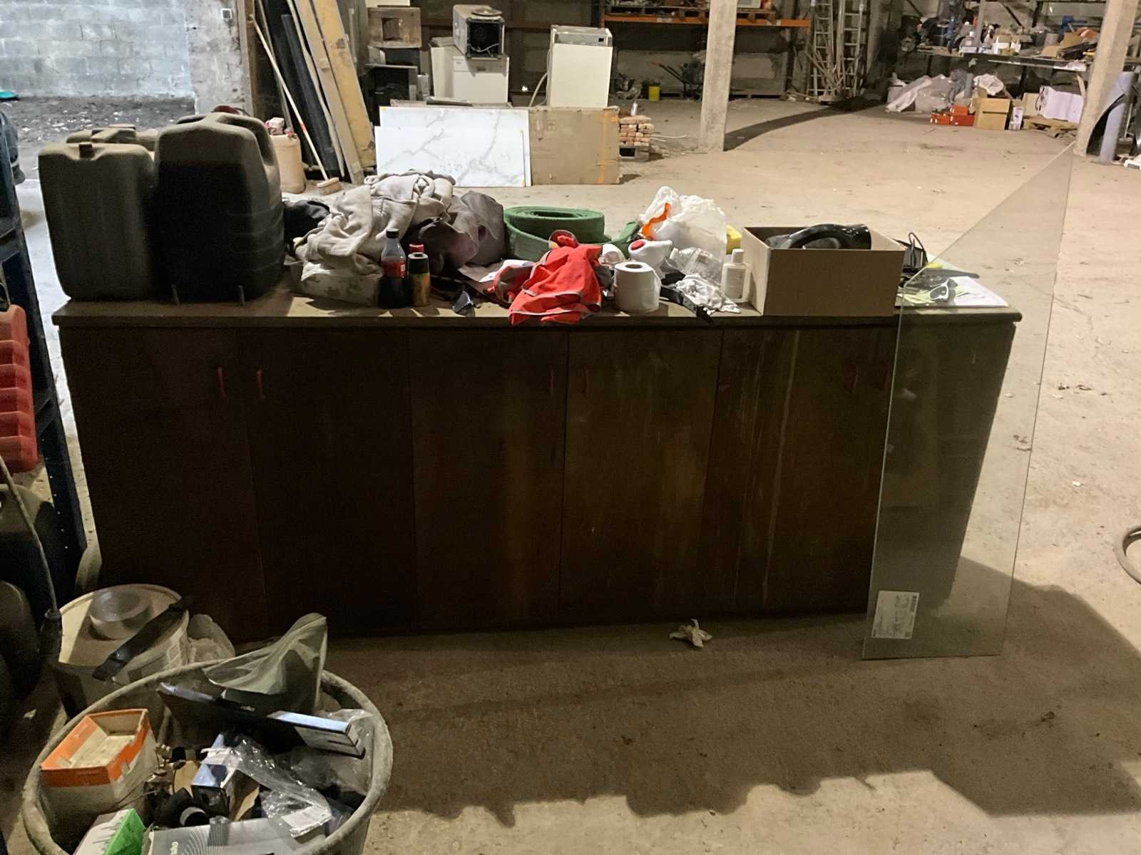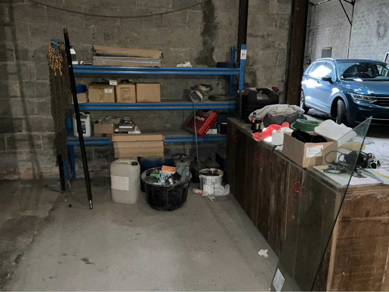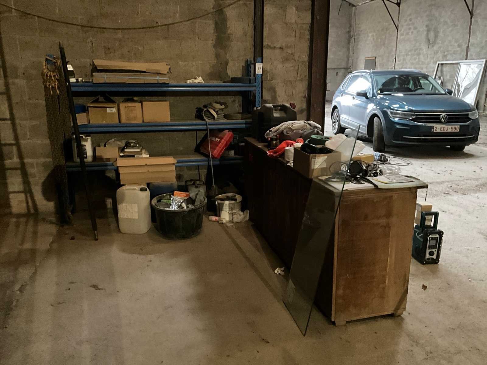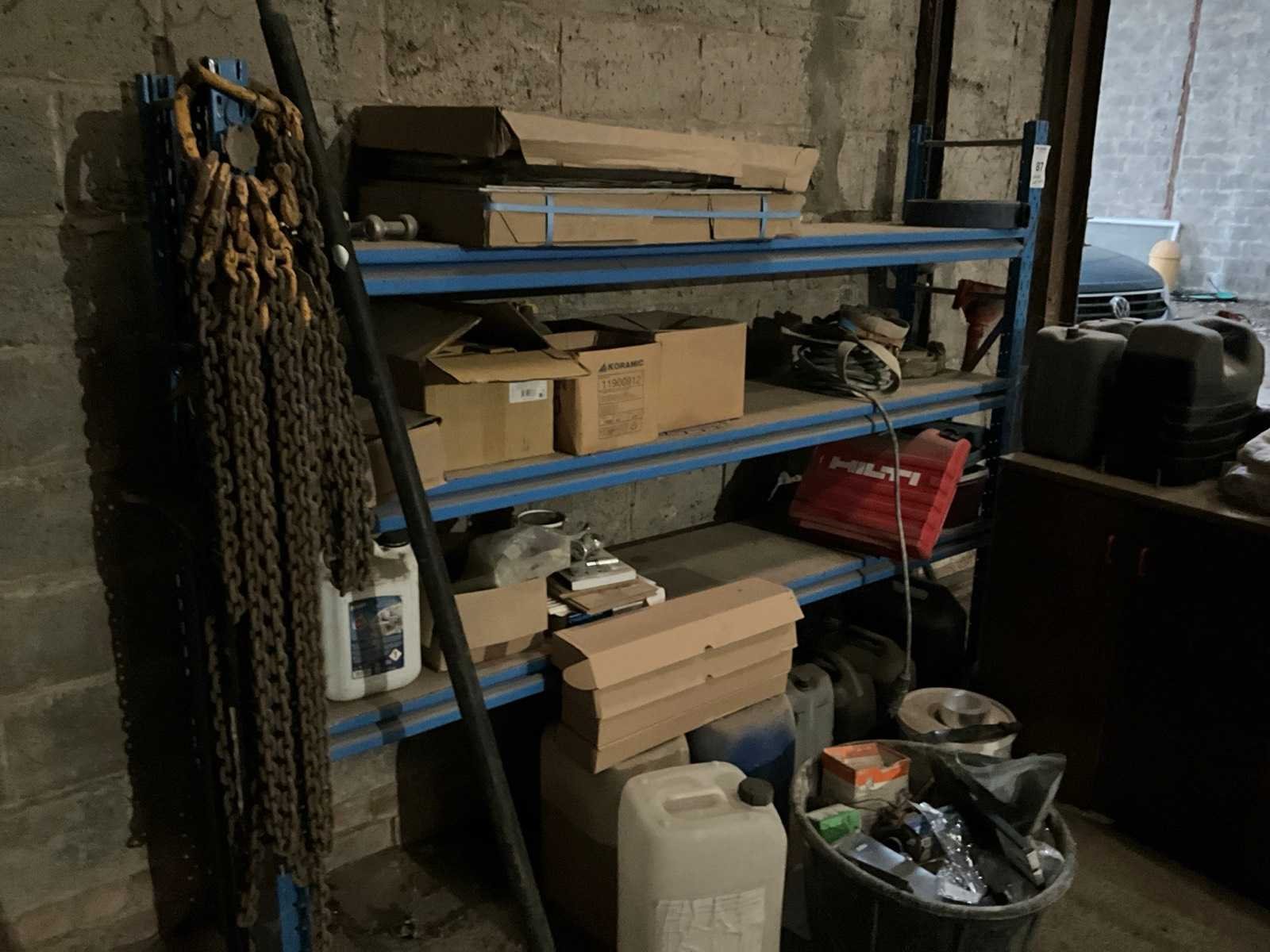 Inhoud Bestaand uit circa 15 pvc ketels van 10-20 liter, karton met verzinkte vijzen 4.0x40/24, panhaken rvs, gyproc vijzen voor vijspistool, scharnieren, 2x hijsketting 2-sprong enz.. Merk: Stow Aantal secties: 3 Sectie afm. b: 2000mm Sectie diepte: 400mm Aantal staanders: 2 Aantal liggers: 6 Aantal legborden: 3 Totale afmeting L: 400cm Totale afmeting Breedte: 2200cm Totale afmeting Hoogte: 1700cm