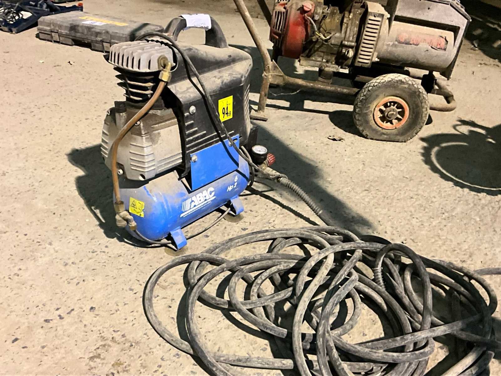 Voorzien van luchtdruk slang Merk: ABAC Bouwjaar: 2012 Capaciteit.: 8bar Buffertank inhoud: 5l Aansluiting: 220V Totale afmeting L: 500mm Totale afmeting Breedte: 200mm Totale afmeting Hoogte: 500mm