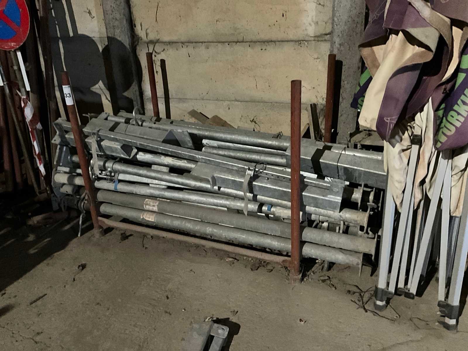 Bestaande uit circa 20 stuks galva met lengte in rust 180 cm met n top beugel voor balkondersteuning, + 5 galva stuks accessoires, in 1x stapeljuk
