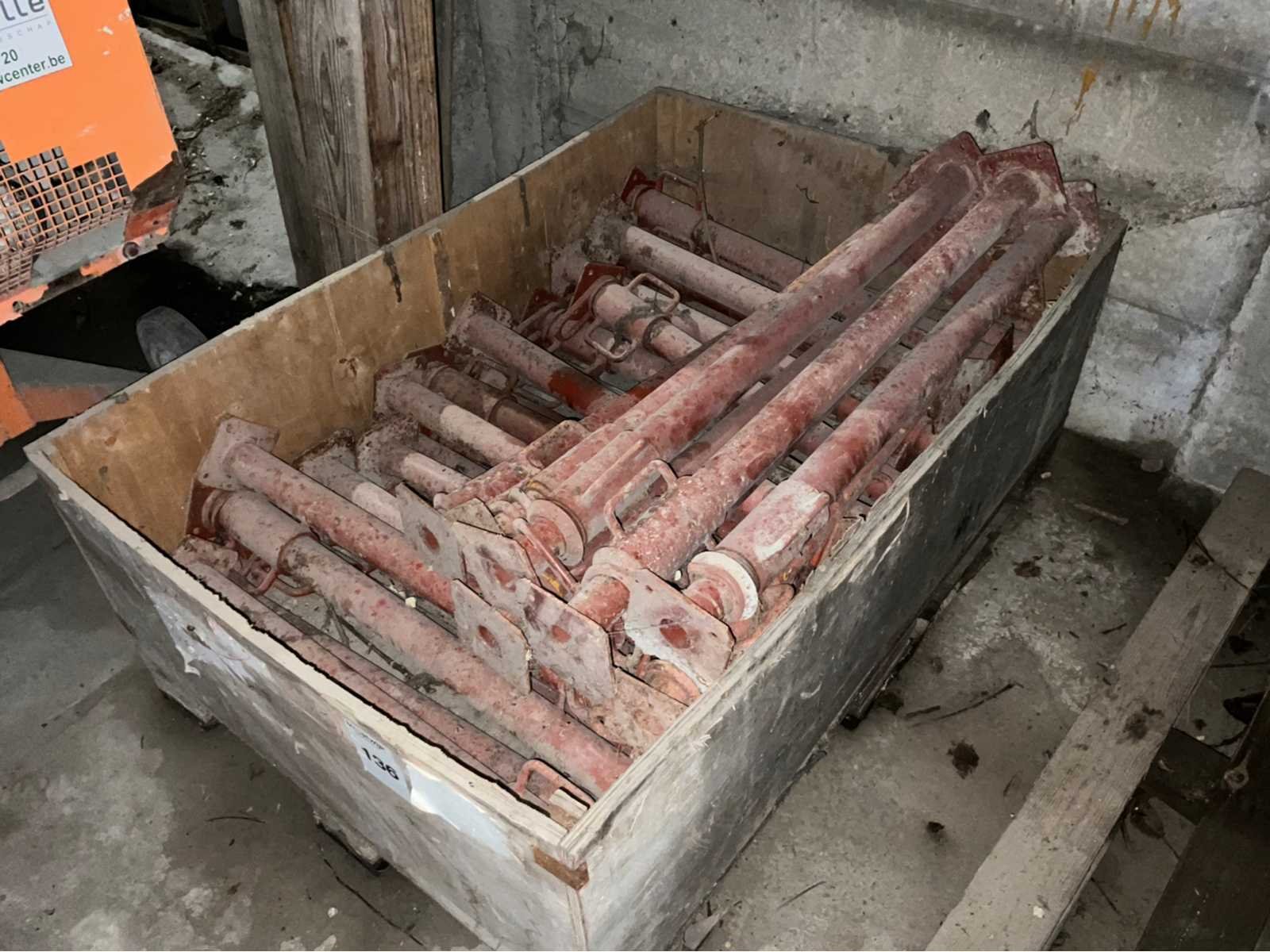 Bestaande uit circa 50 stuks gelakte met lengte in rust tss 80-100 cm, in 2x houten palletbox