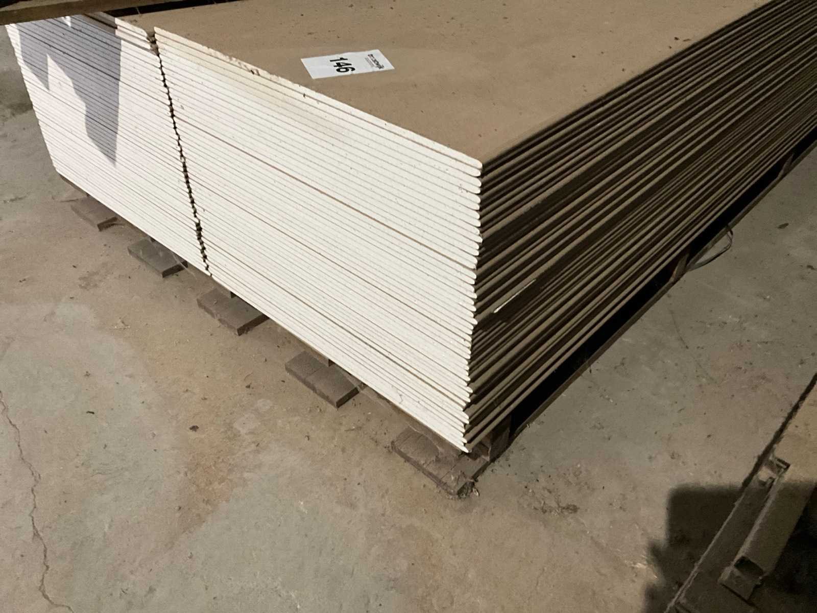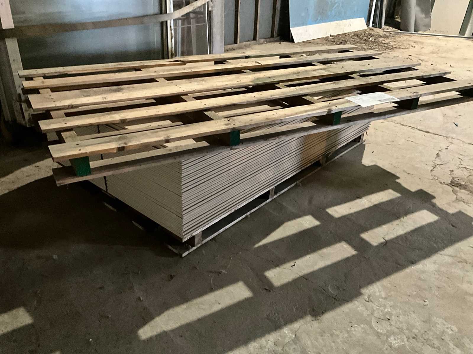 Circa 90 stuks, Plaat breedte pet stuk 60 cm, dikte 1 cm, op pallet Lengte: 205cm Breedte: 120cm Hoogte: 55cm