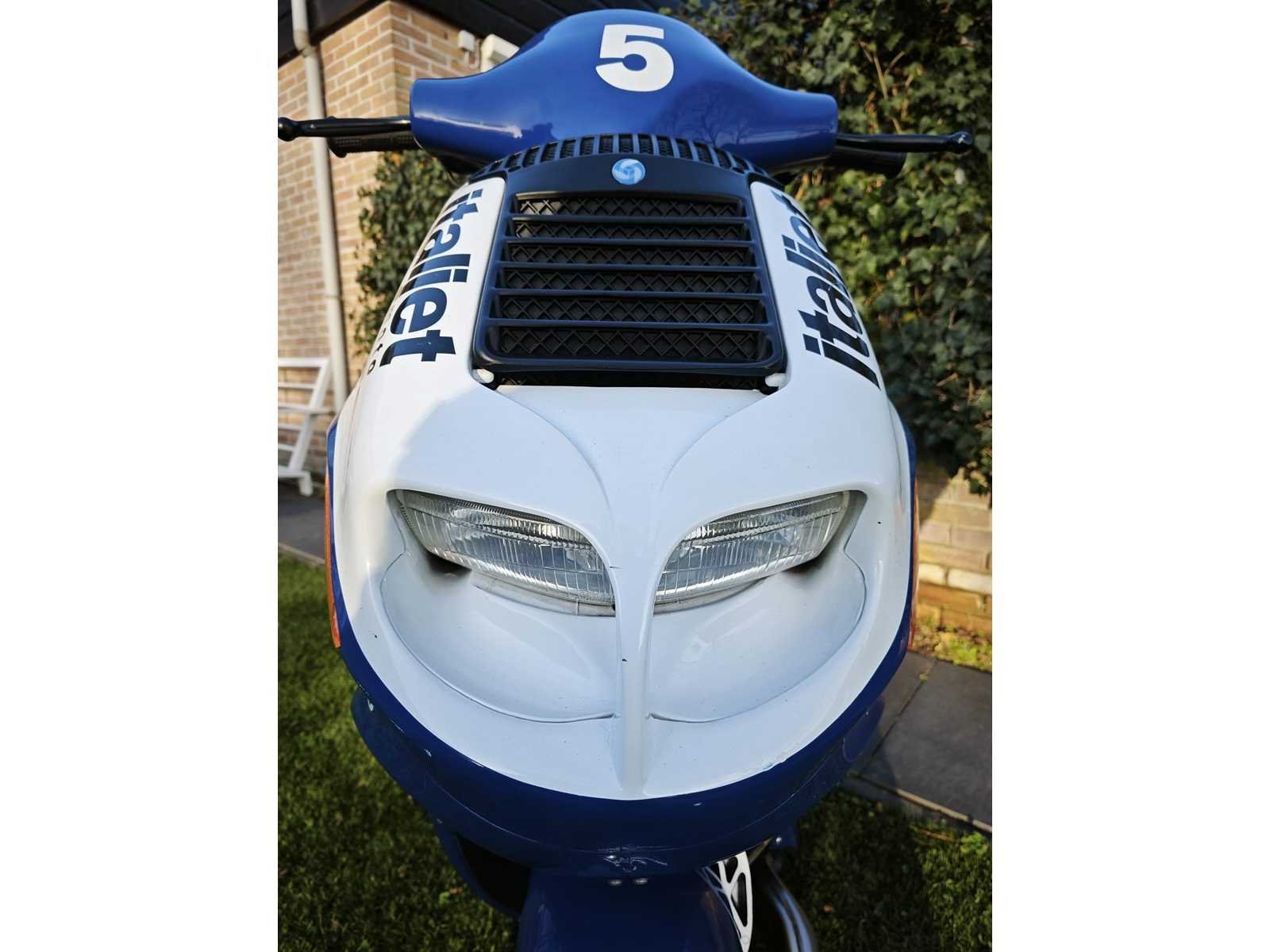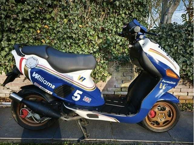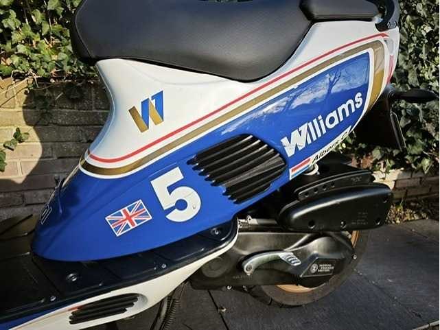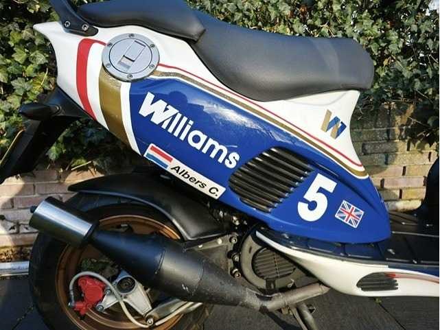 Het Formule 1 team van Williams had aan het einde van de jaren negentig een samenwerking met de Italiaanse scooter fabrikant Italjet. In 1996 en 1997 gebruikte het Williams F1 team dat toen gesponsord werd door Rothmans, speciaal geprepareerde scooters als vervoer in de Paddock. Deze scooters hadden de kenmerkende blauw-wit-gouden kleurstelling van het team van die tijd. Er werden ook Limited Editions van de Formula 50 scooters gemaakt voor het publiek (naar verluidt 1000 stuks) bekend als de Williams F1 Editie. wereldkampioen Damon Hillen zijn teamgenoot Jacques Villeneuve hadden ook ieder een Italjet scooter tot hun beschikking. Deze Paddock scooter behoorde aan de Nederlandse coureur Christian Alberts. Merk: Italjet Model: Formula 50 F1 Type: Williams Kenteken: DT-703-D Afgelezen kilometerstand: 1416km
