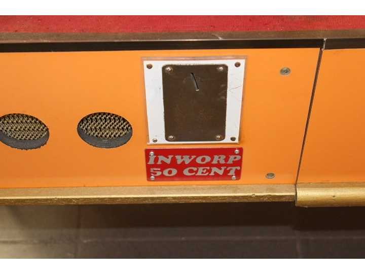 Spelend en bewegend poppentheater uit speelgoedmuseum, muziek d.m.v. 8 track speler, na inworp van 50 eurocent begint het theater, zeer exclusief Merk: Magic Puppet Show Lengte: 38cm Breedte: 195cm Hoogte: 140cm Gewicht: 116kg Bouwjaar: 1972