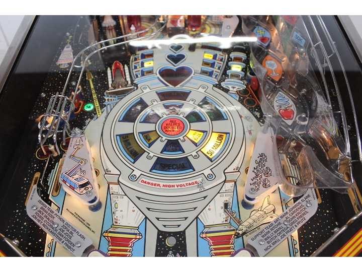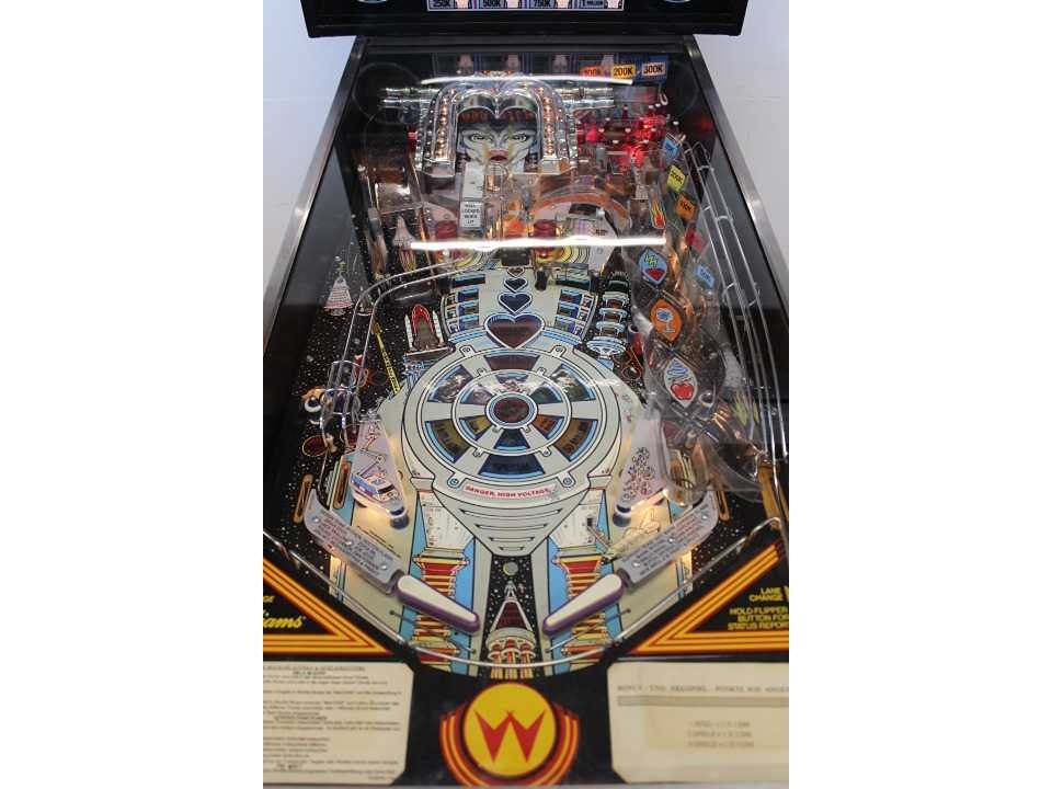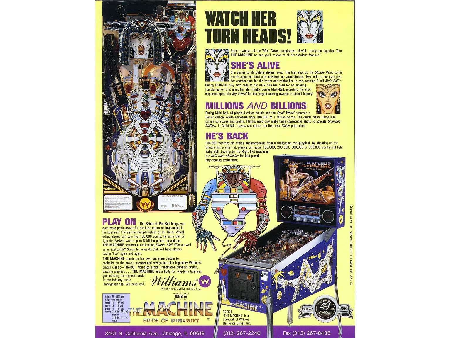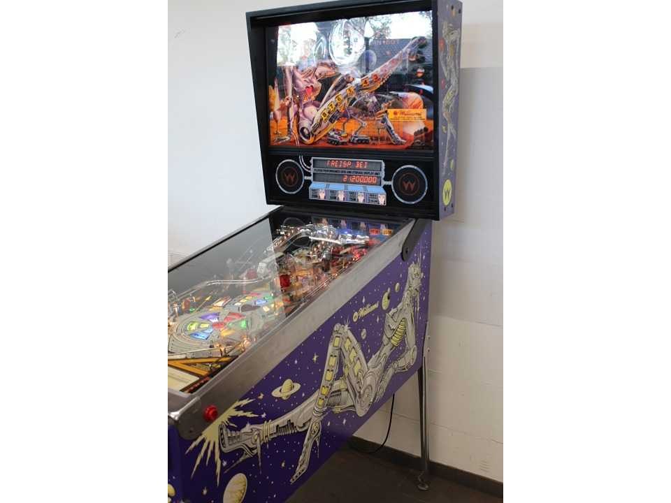 1-4 spelers, electronisch, digitale displays, diverse licht- en geluidseffecten, LED verlichting, thema Outer Space Robots Merk: Williams Type: The Machine Bride of Pinbot Bouwjaar: 1991