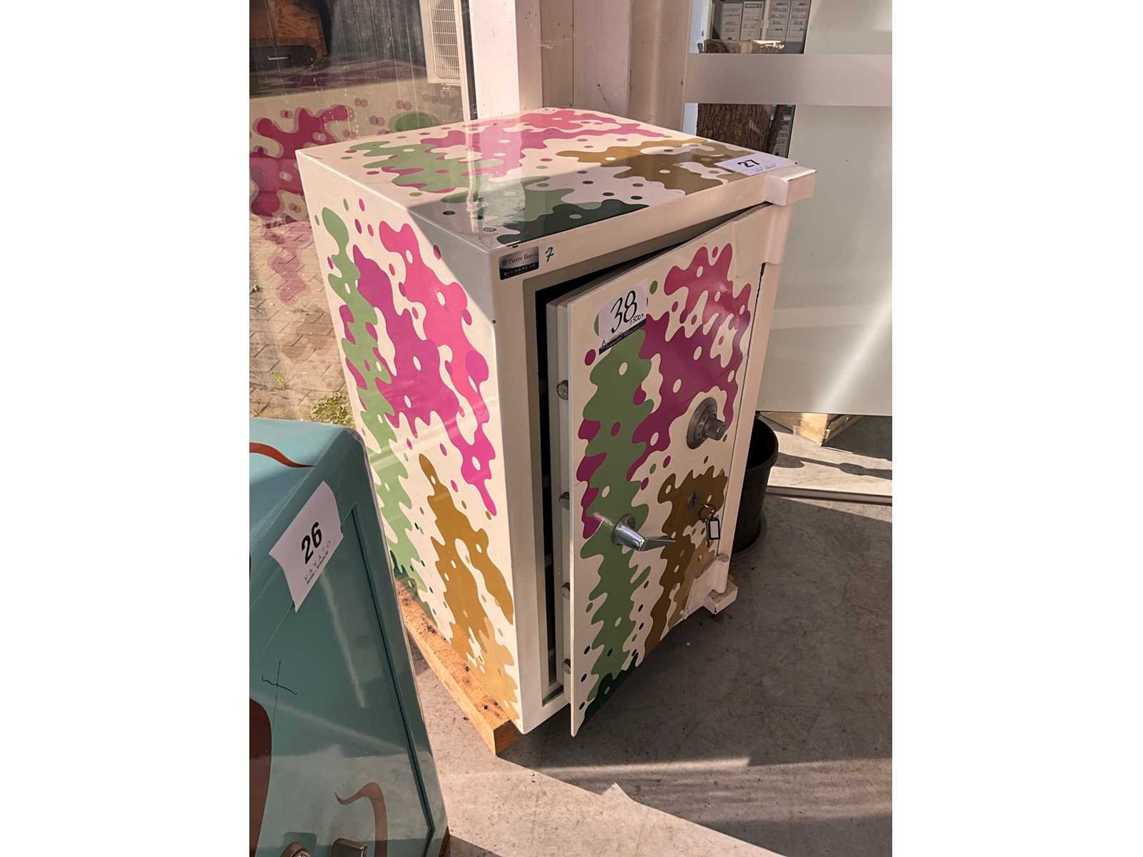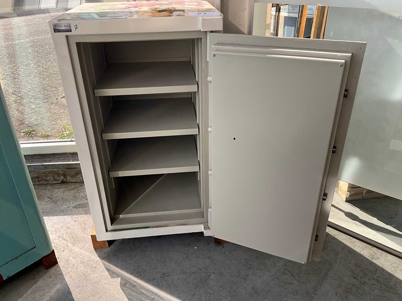 Voorzien van sleutel, code ongekend. Lengte: 64cm Breedte: 60cm Hoogte: 100cm