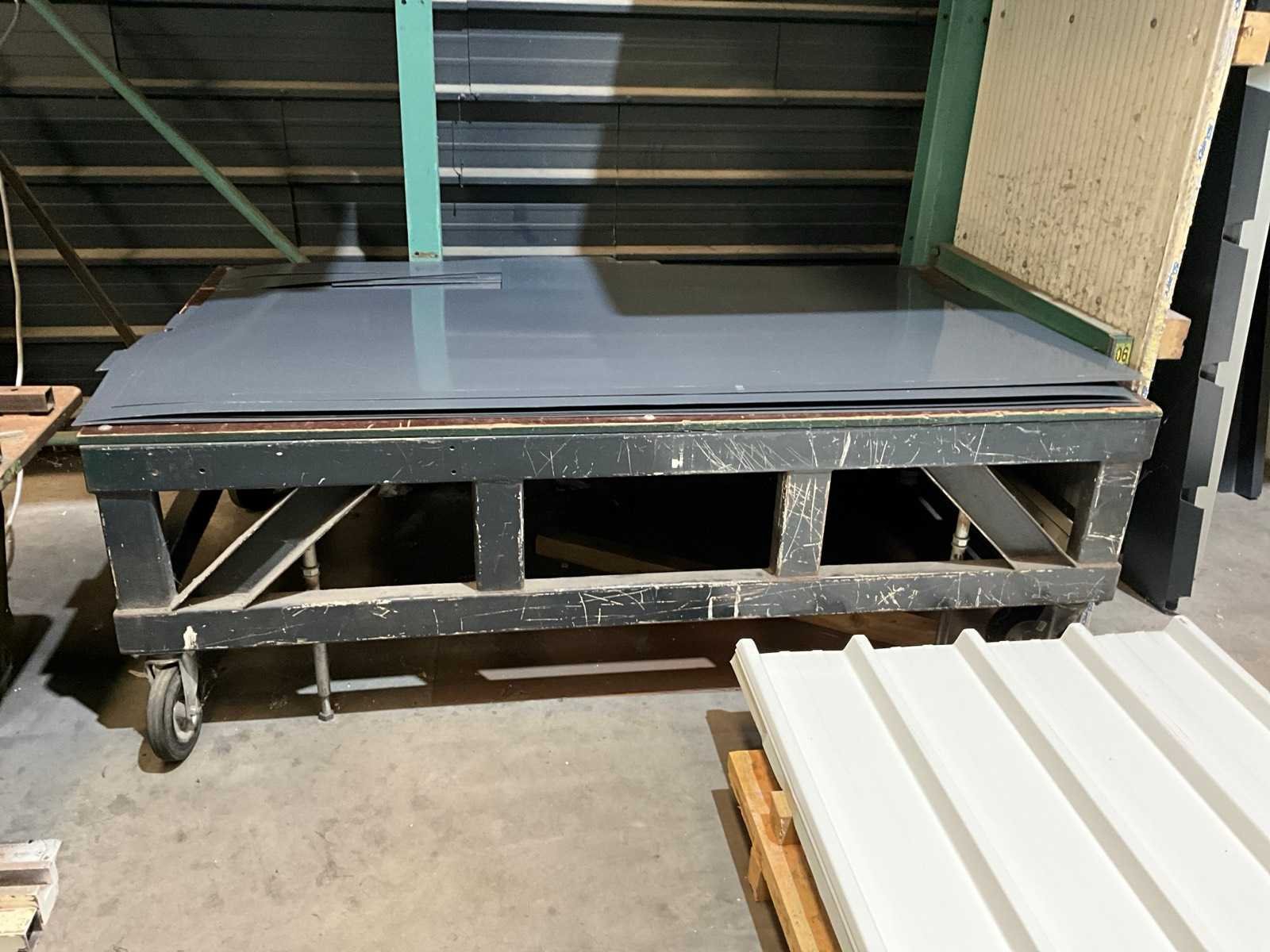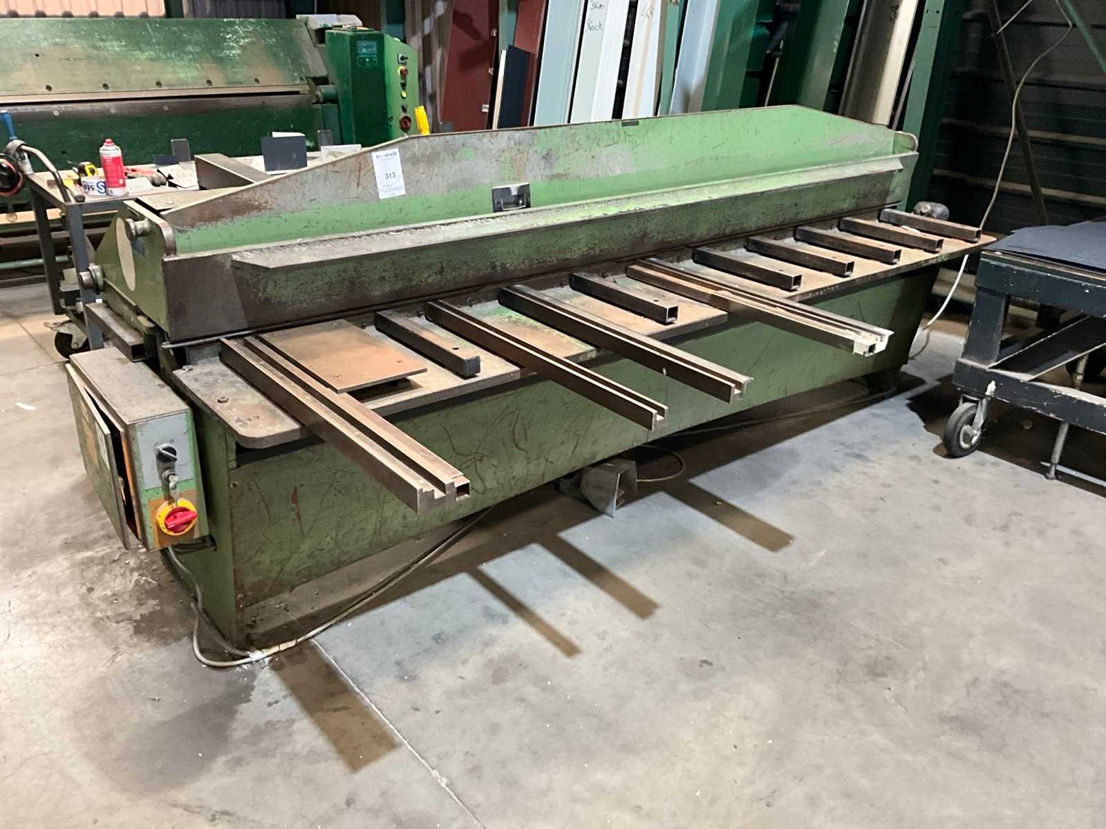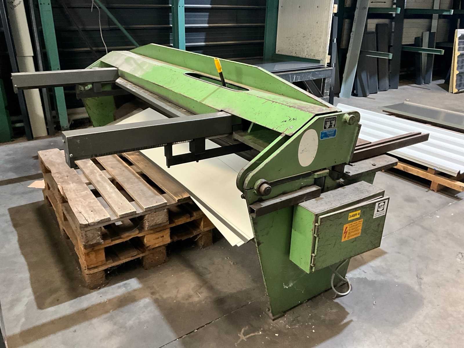 Type 82.25 met série nummer 3474, voetbediening, + bijhorende mobiele voorraad tafel + opliggend plaatmateriaal afmetingen 1250x2150 mm Merk: Reinhardt Type: 82.25 Serienummer: 3474 Snijlengte: 2540mm Max. plaatdikte: 2mm Achteraanslag handbediend: true Motorvermogen (kW): 3kW Aansluiting: 400V Machinegewicht: 1600kg Afmeting l: 2000mm Afmeting b: 3000mm Afmeting h: 1200mm