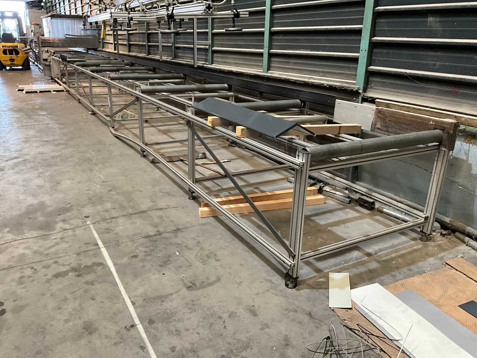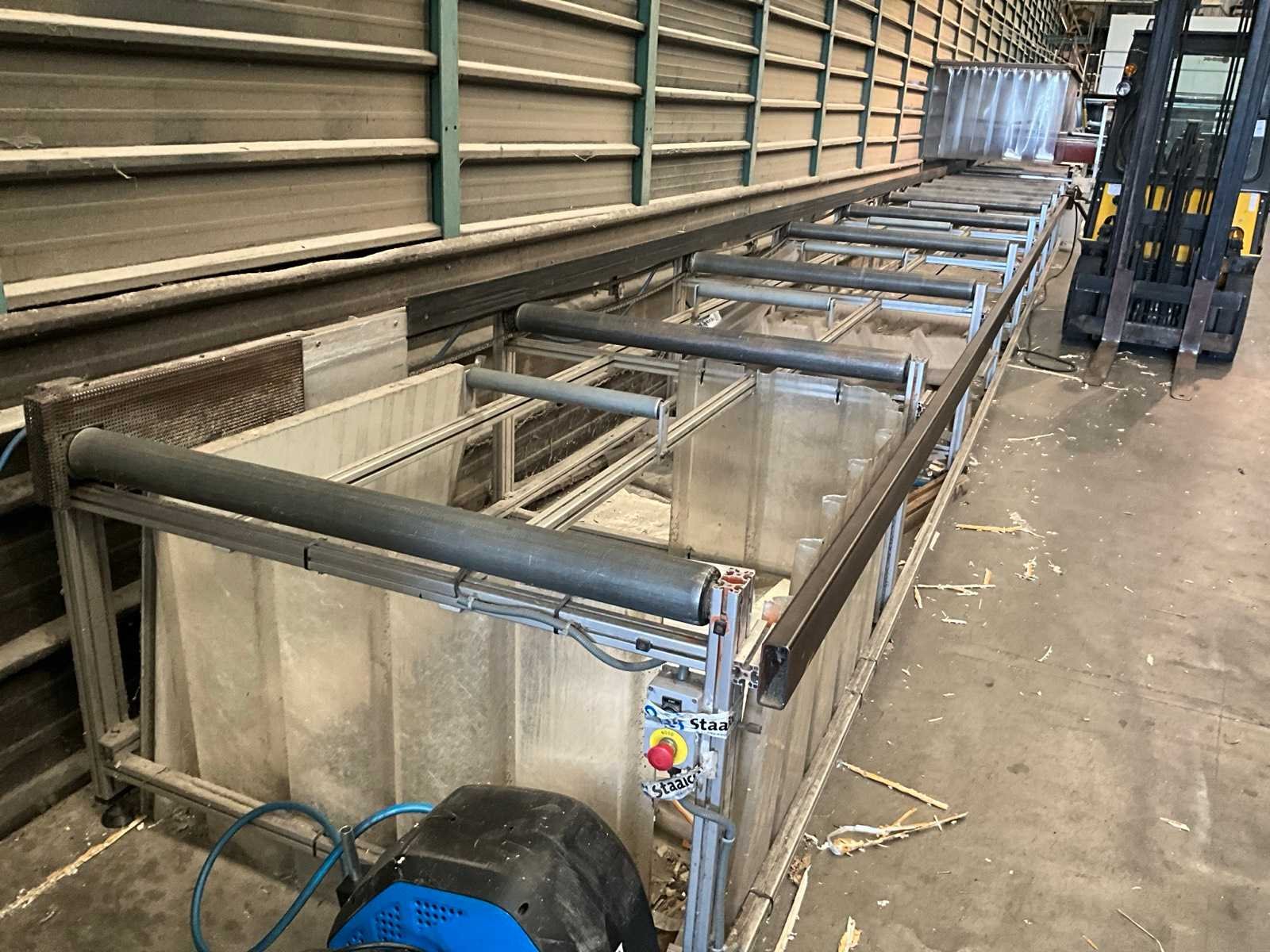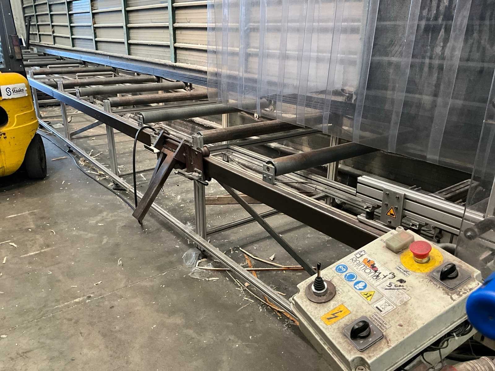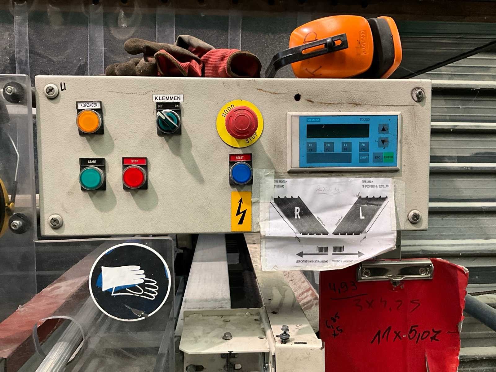 Voorzien van gestuurde aan en afvoerlijn lente 2x 14 meter, aluminium frame, klemfunctie, ZONDER AFZUIGING, zonder verdere gegevens Merk: Raimondi Zaagblad Ø: 480mm Aansluiting: 400V Totale afmeting L: 1500mm Totale afmeting Hoogte: 1600mm