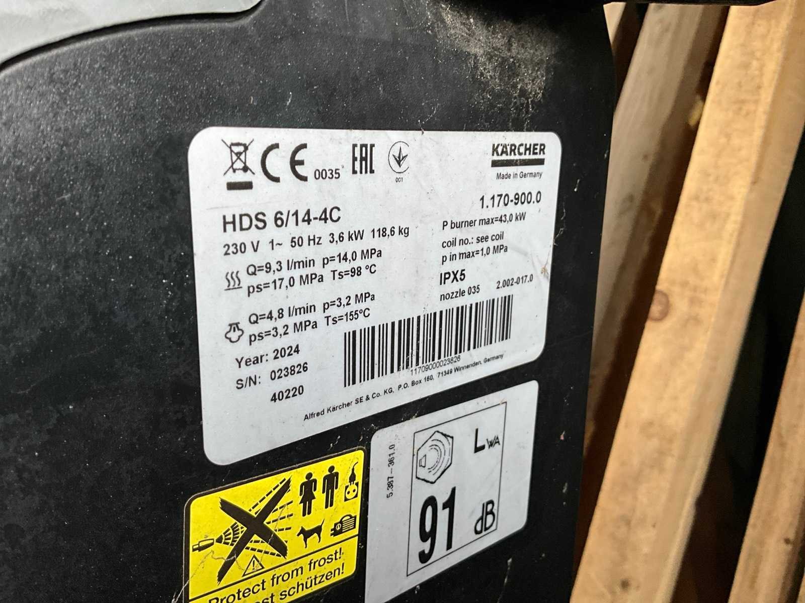 Voorzien van spuitlans met flexibel, 220 volt mono aansluiting Merk: Karcher Type: HDS6/14-4C Bouwjaar: 2024 Vermogen: 3.6 Lengte: 120cm Breedte: 60cm Hoogte: 100cm