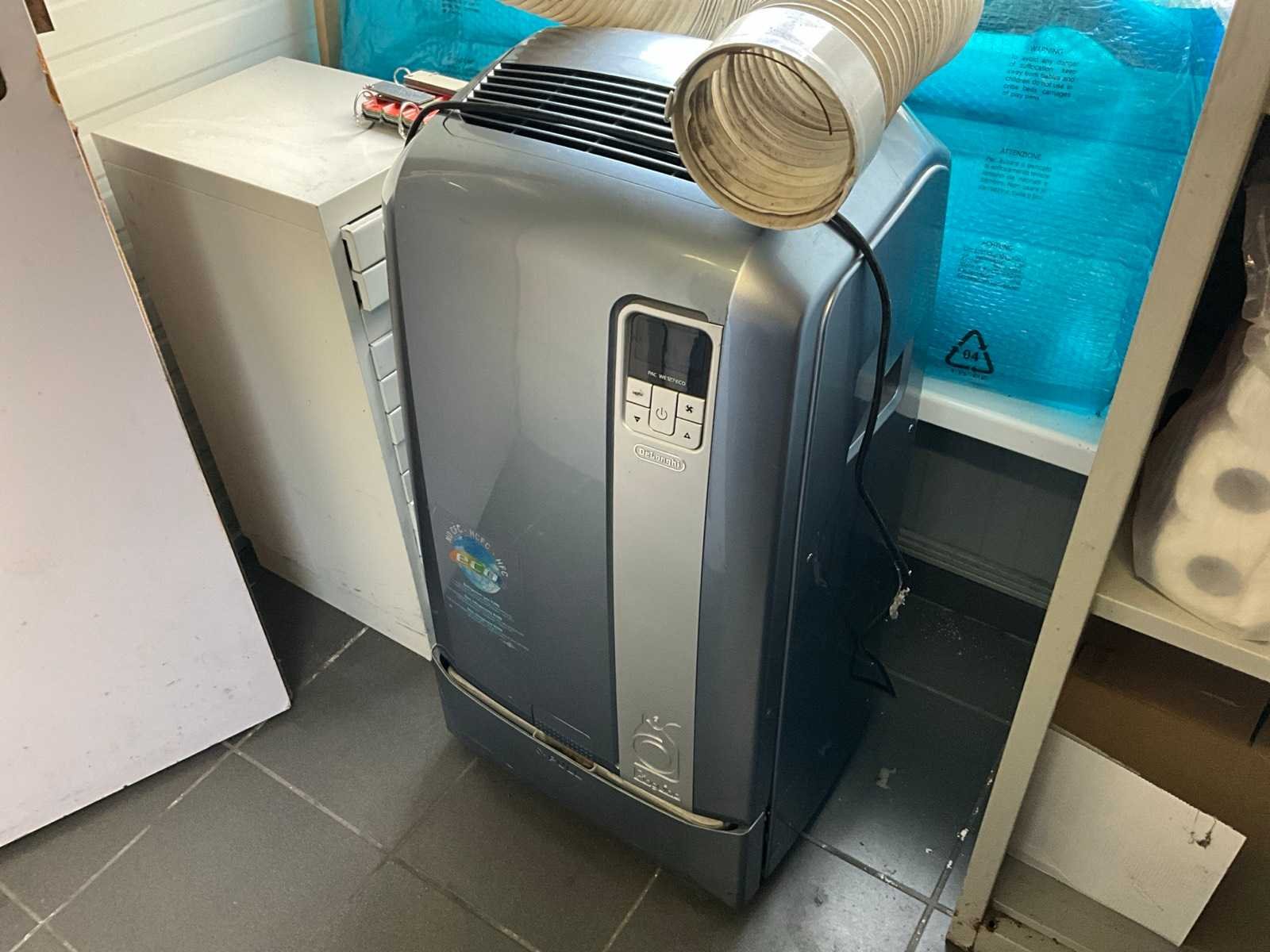 Bestaand uit tweedelig bureautafel 250x120 cm, 2x laptop Acer+ Compac, printer copieertoestel HP deskjet 4120e, printer kopieerapparaat Brother MFX, expressotoestel Nescafé Dolce Gusto, 2 x bureaustoel, 1x electrische heater, airco Delonghi, 3x plaatstalen dossierkast met inhoud, BOEKHOUDING BLIJFT TER PLAATSE!!