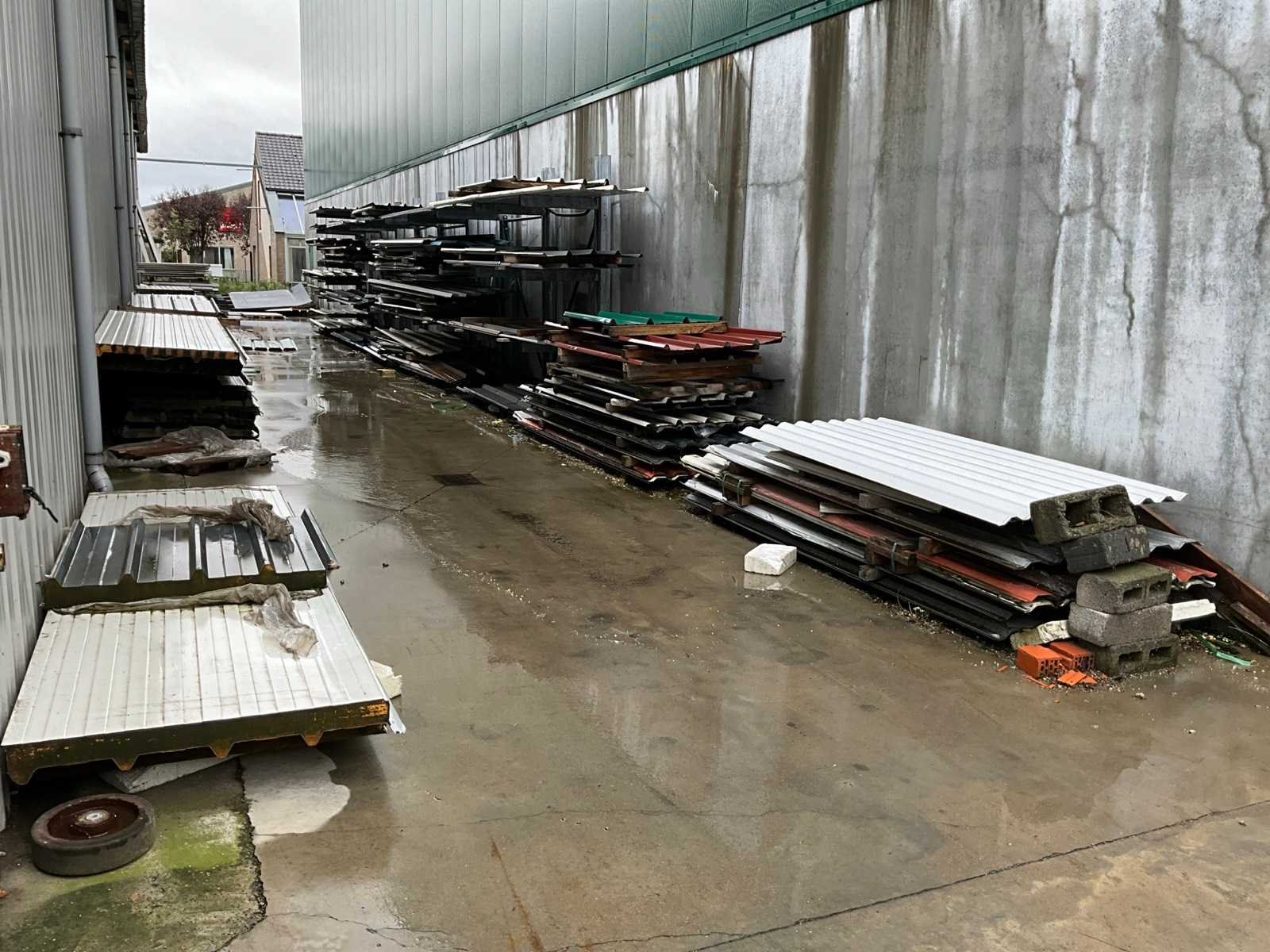 Gesitueerd buiten vooraan, bestaande uit draagarmstelling met 10 staanders hoogte 3 meter, circa 30 liggers, grote partij diverse geïsoleerde panelen in en rond de draagarmstelling