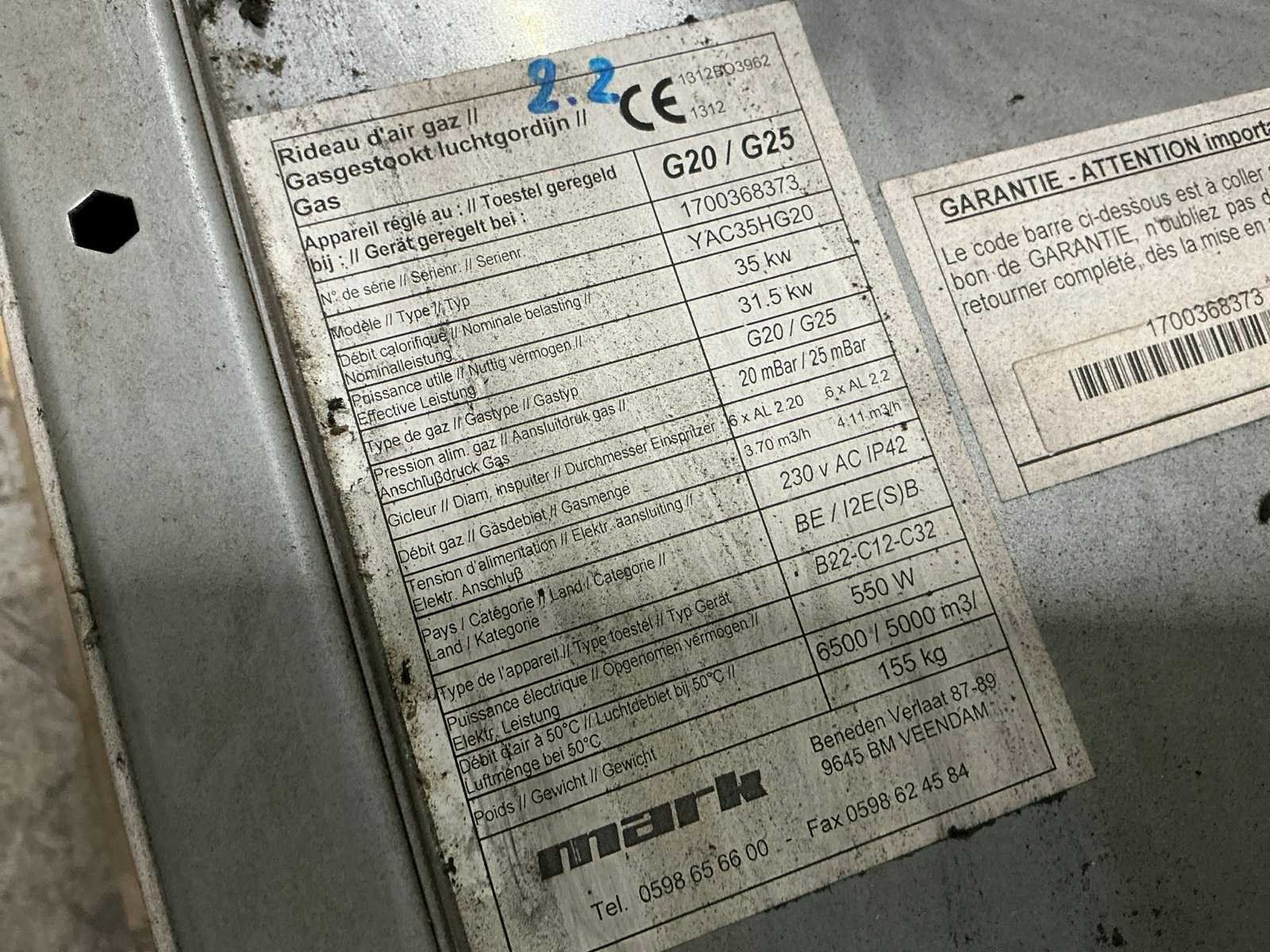 Merk: Mark Type: YAC35HG29 Verwarmingscapaciteit: 35kW Gasgestookt: true Totale afmeting L: 600mm Totale afmeting Breedte: 2000mm Totale afmeting Hoogte: 600mm