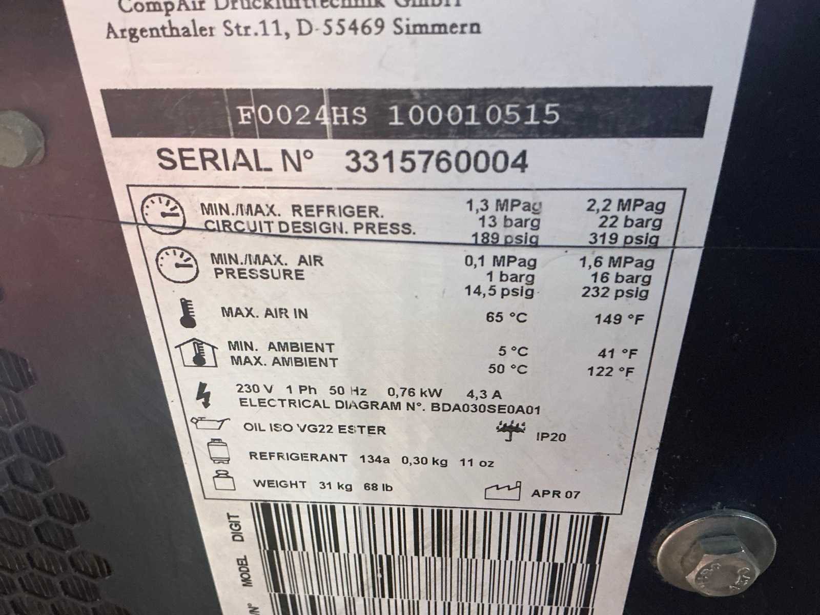 170xH130cm, voorzien van Compair F0024HS luchtdroger Tankinhoud: 400l Horizontaal: true