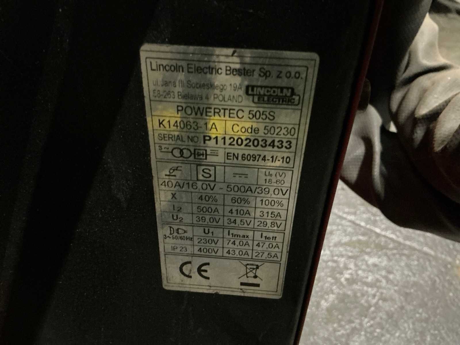 Voorzien van Coolarc koeling Merk: Lincoln Type: Powertec 505S Ampère belasting: 500A Draadaanvoerunit: true Aansluiting: 400V