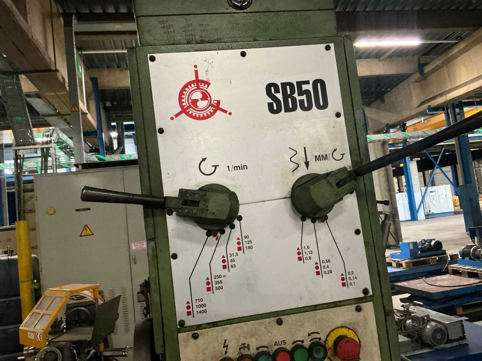 Type: SB50 Aantal snelheden: 12 Spindelsnelheid van n =: 31.5rpm Spindelsnelheid tot n =: 1400rpm Tafel afmeting l: 600mm Tafel afmeting b: 640mm Aansluiting: 400V Afmeting l: 1050mm Afmeting b: 700mm Afmeting h: 2590mm