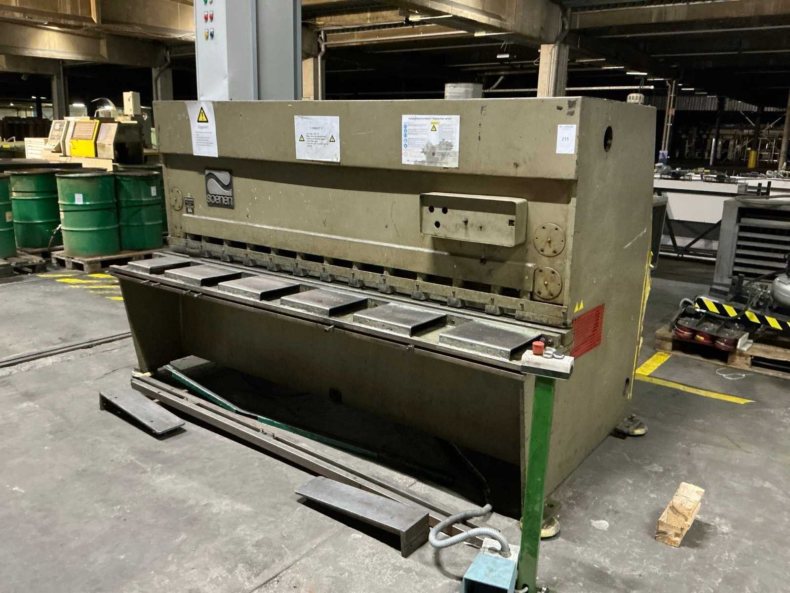 Merk: Soenen Snijlengte: 2200mm Aansluiting: 400V Afmeting l: 2000mm Afmeting b: 2700mm Afmeting h: 2530mm