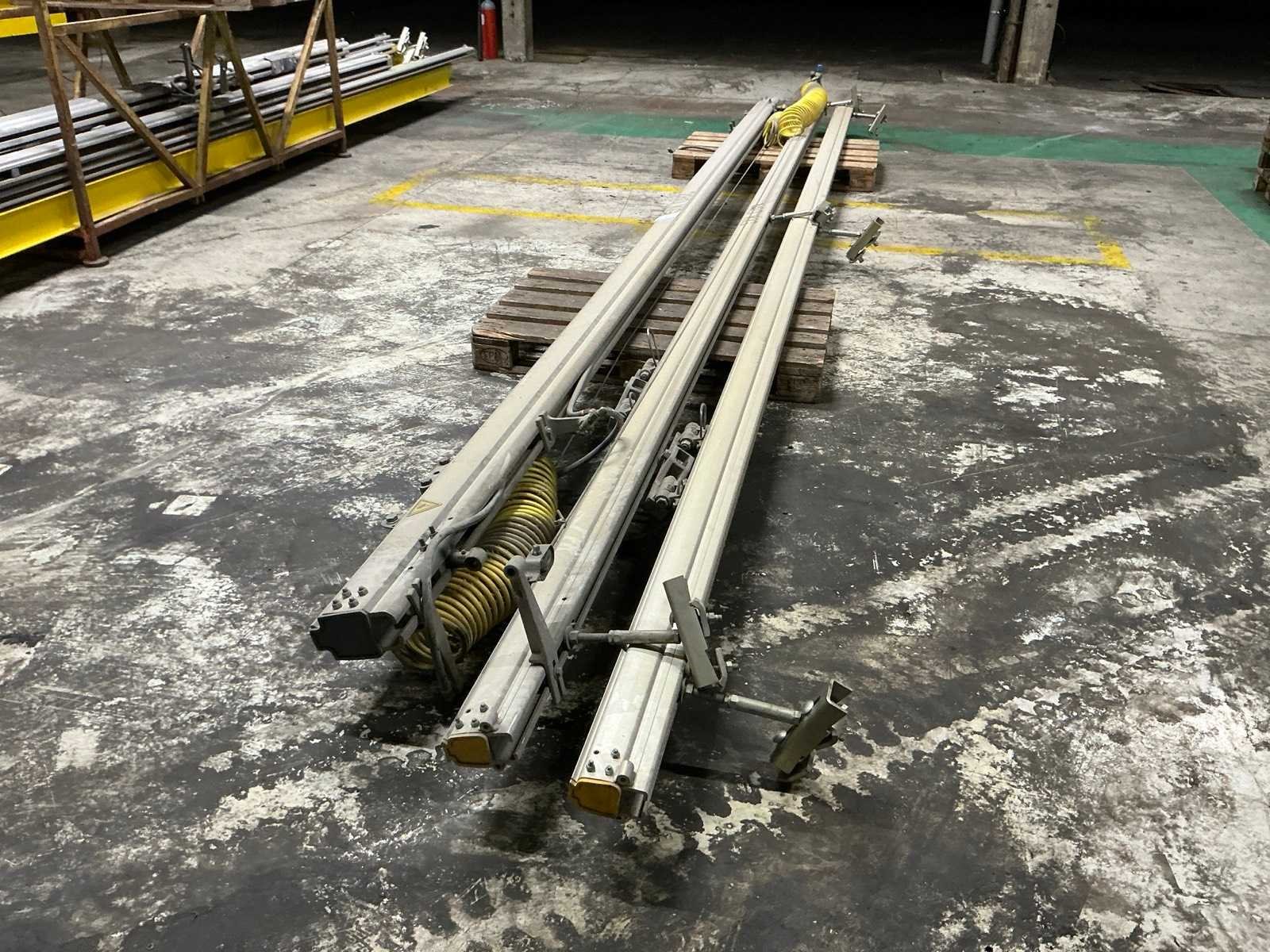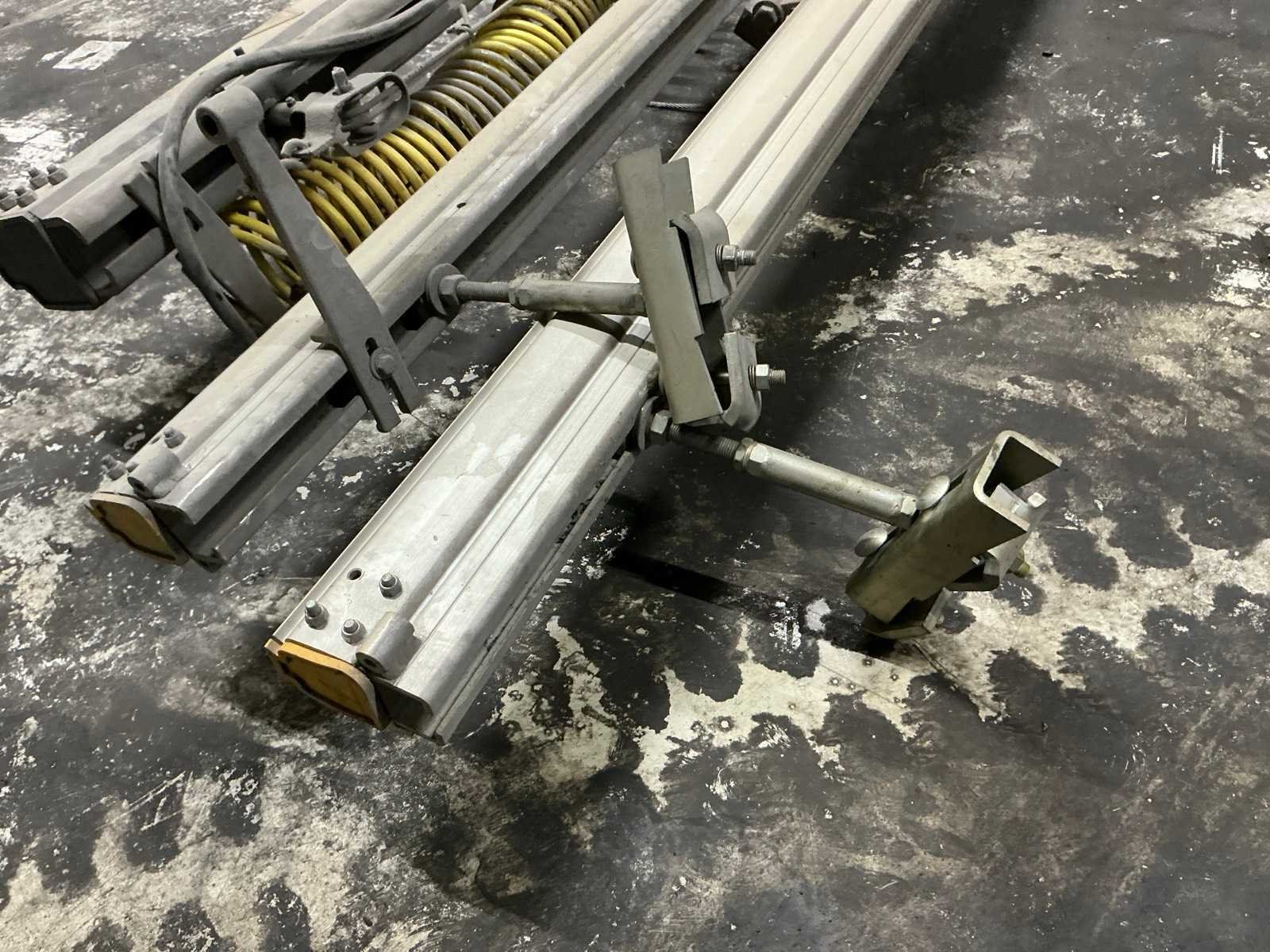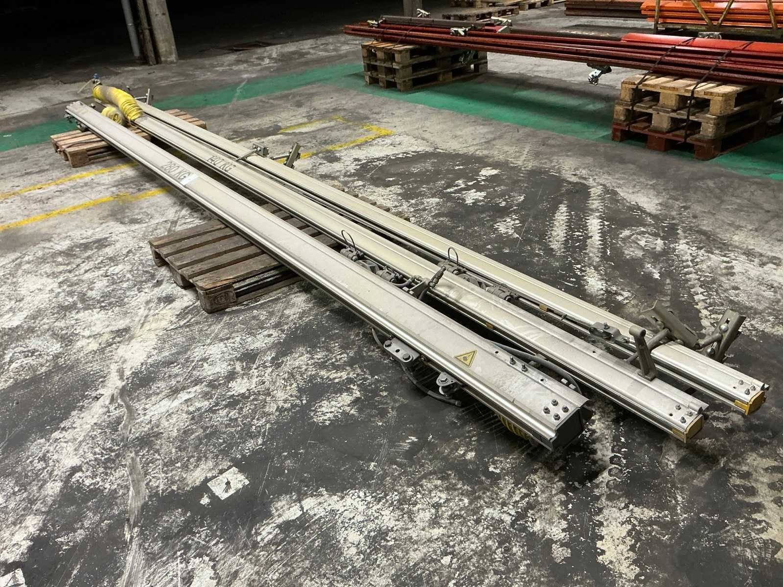 Zijnde 2 aluminium railkokers 7m met plafondbeugels en aluminium dwarsligger 6,5m met draagcapaciteit 280kg Merk: Ingersoll Rand